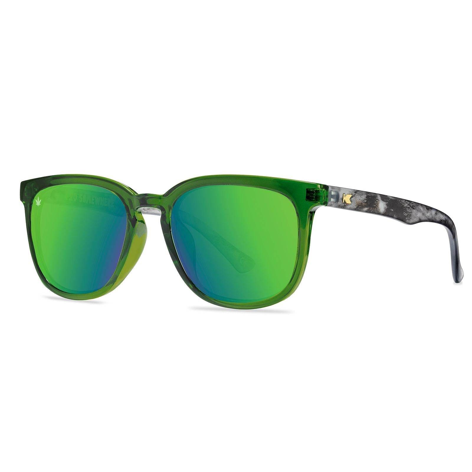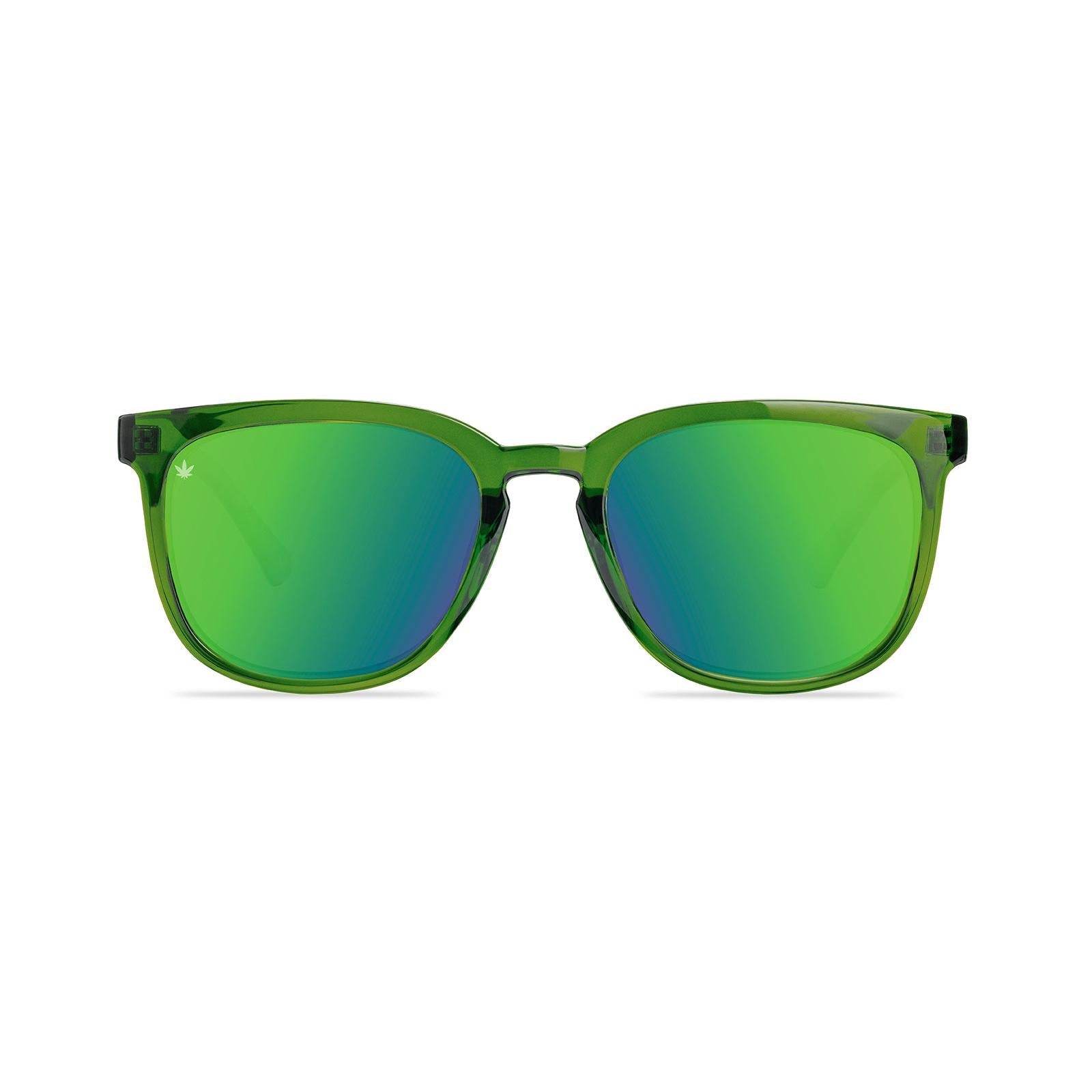 The 420 Somewhere Paso Robles are all about staying laid back all day long. An emerald haze front frame loudly wraps polarized ganja green lenses, while translucent smoke puff arms and gold detailing keep things chill. Of course, this pair wouldn’t be complete without a cannabis lens etch and a leaf-covered microfiber protective pouch to match.