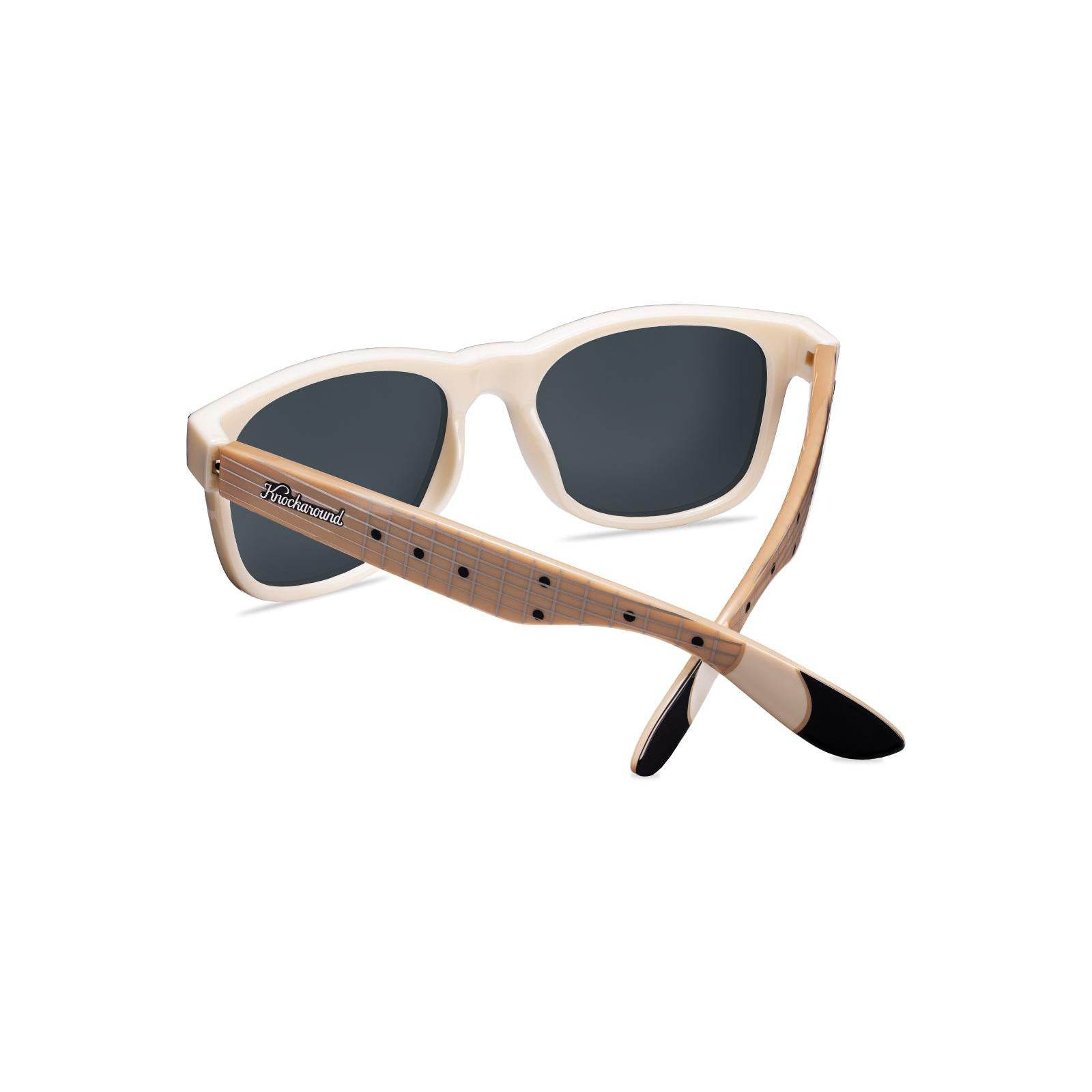 Inspired by the legendary Fender® Stratocaster™, these Fort Knocks hit every note of cool with their guitar-neck arms and fretboard detailing. Just like a Strat bridges the gap between bluesy lows and screaming highs, these shades blend iconic black and white fronts with a touch of vintage wood grain, mirroring the guitar's timeless body. A Fender® logo on the inside of the arm celebrates the brand’s profound impact on music history. Silver hardware and the iconic Fender logo etched on the lens round at this sweet pair of shades.