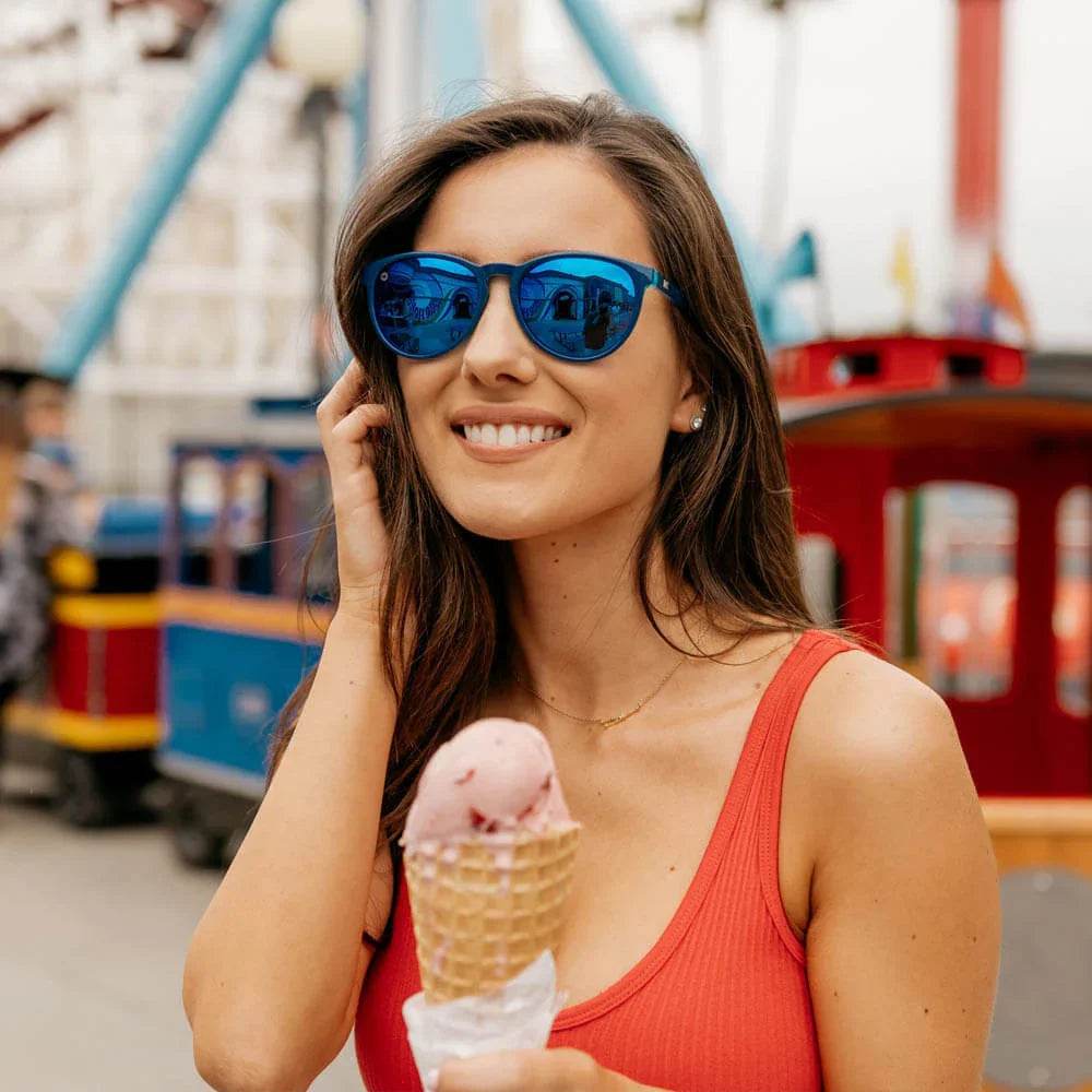 We've got the blues, and that's a good thing when it comes to this colorful pair of polarized sunglasses! Cool off with these monochromatic Mai Tais, which feature the perfect combination of blueberry geode frames and matching blue moonshine lenses. Our Mai Tais offer an elegantly rounded shape that's super flattering for both men and women, plus UV400 protection and impact resistant lenses.