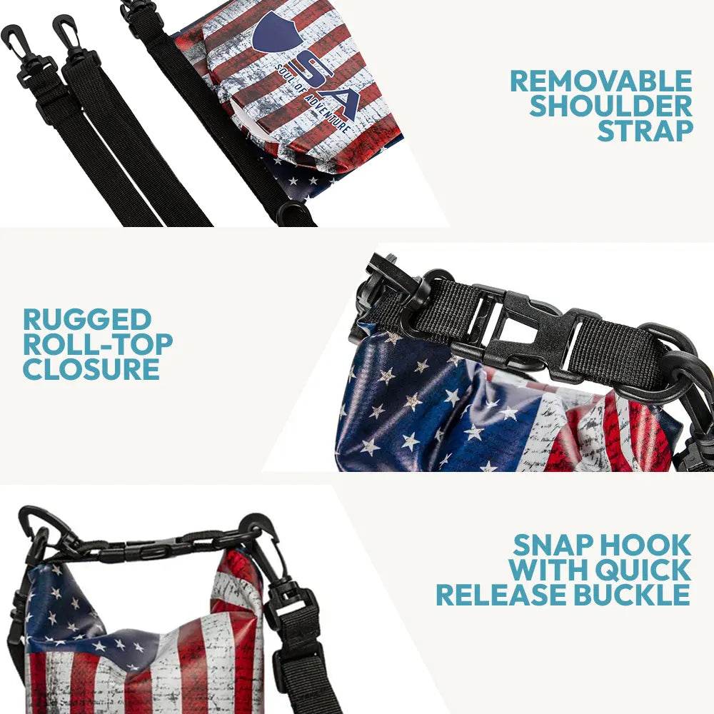 Our Dry Bag will keep your items dry no matter the outdoor adventure. Headed off to go fishing, kayaking, paddle boarding or any other water sport make sure you bring alone the dry bag to keep your personal items safe and dry. The Soul of Adventure dry bag is not only waterproof but also dust-proof and scratch-resistant.