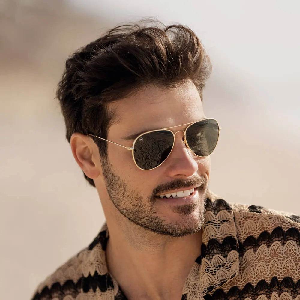 With crystal-clear optics thanks to the polarized lenses, and all-day comfort thanks to the rubber ear pads, these gold aviator sunglasses with green lenses are sure to become your new go-to eyewear. They feature a classic and timeless aviator shape plus rubber tortoise shell detailing for an extra pop of style. Plus, every pair of pilot-inspired aviator sunglasses from Knockaround is finished with impact-resistant, UV400 protection lenses to keep your eyes safe. Just add your favorite bomber jacket and you're all set.