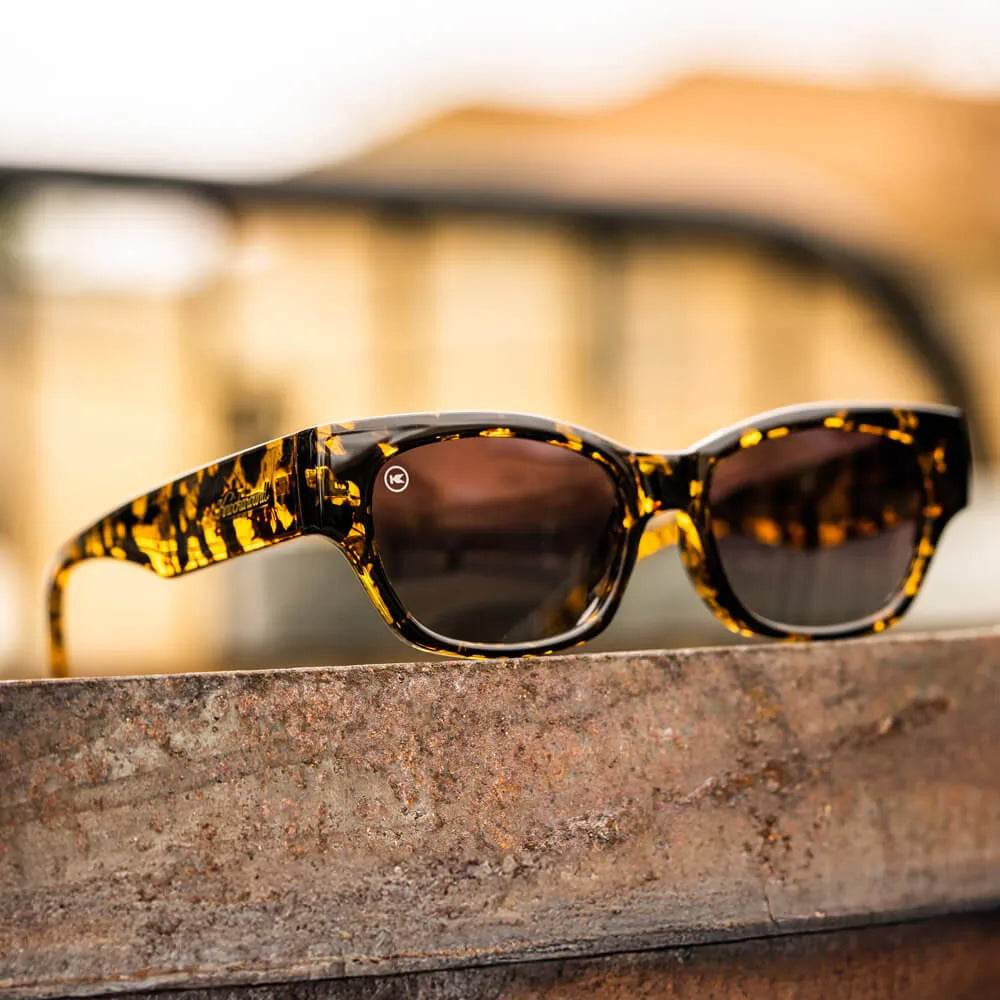 Your presence speaks for itself when you’ve got your Le Grand Amour Junipers on. These stylish sunglasses feature a full tortoise take on high caliber class thanks to thick arms and rounded fronts, so there’s no question who’s in charge. Polarized smoke gradient lenses only add to the attitude, plus resolute UV400 protection and impact resistance offer extra reassurance on any deluxe getaways. Top the whole thing off with glitzy gold detailing and all you need is a sassy one-liner to make your exit.