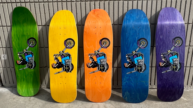 This version of the Rip Saw graphic was originally released in 1987. The graphic is similar to the Rip Saw except it only features one blade and has lightning bolts coming off the blade. We're proud to reissue this board in a ton of colors. Check out those money bumps!