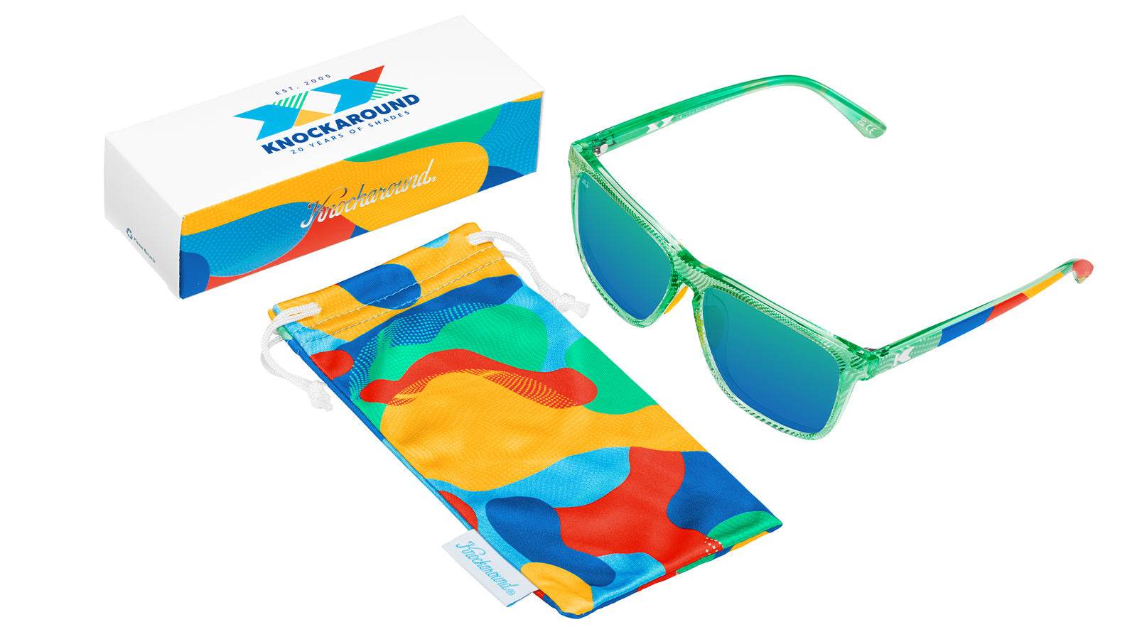 The Limited Edition 20th Anniversary Fast Lanes Sport sunglasses are here—built on two decades of Knockaround style, adventure, and everyday cool. Featuring our iconic colorful camo print on the arms and a subtle lawnmower lens etch paying tribute to where it all began, this pair is equal parts history and celebration.