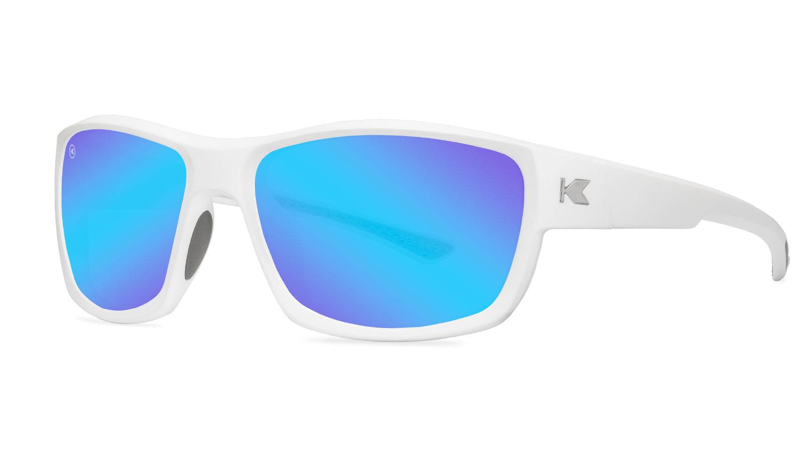 Effortlessly cool with a cosmic, modern vibe, Aura High Stakes bring celestial style to any adventure. The sleek white frames contrast with cool grey rubberized details, while bright chrome ‘K’ logos add a touch of shine. Morning Moonshine polarized mirrored lenses evoke dreamy sunrise strolls, and thanks to the anti-saltwater coating, the view stays crystal clear. Whether you're chasing the tide or lost in a daydream, these stellar shades prove that a little whimsy is always in style.