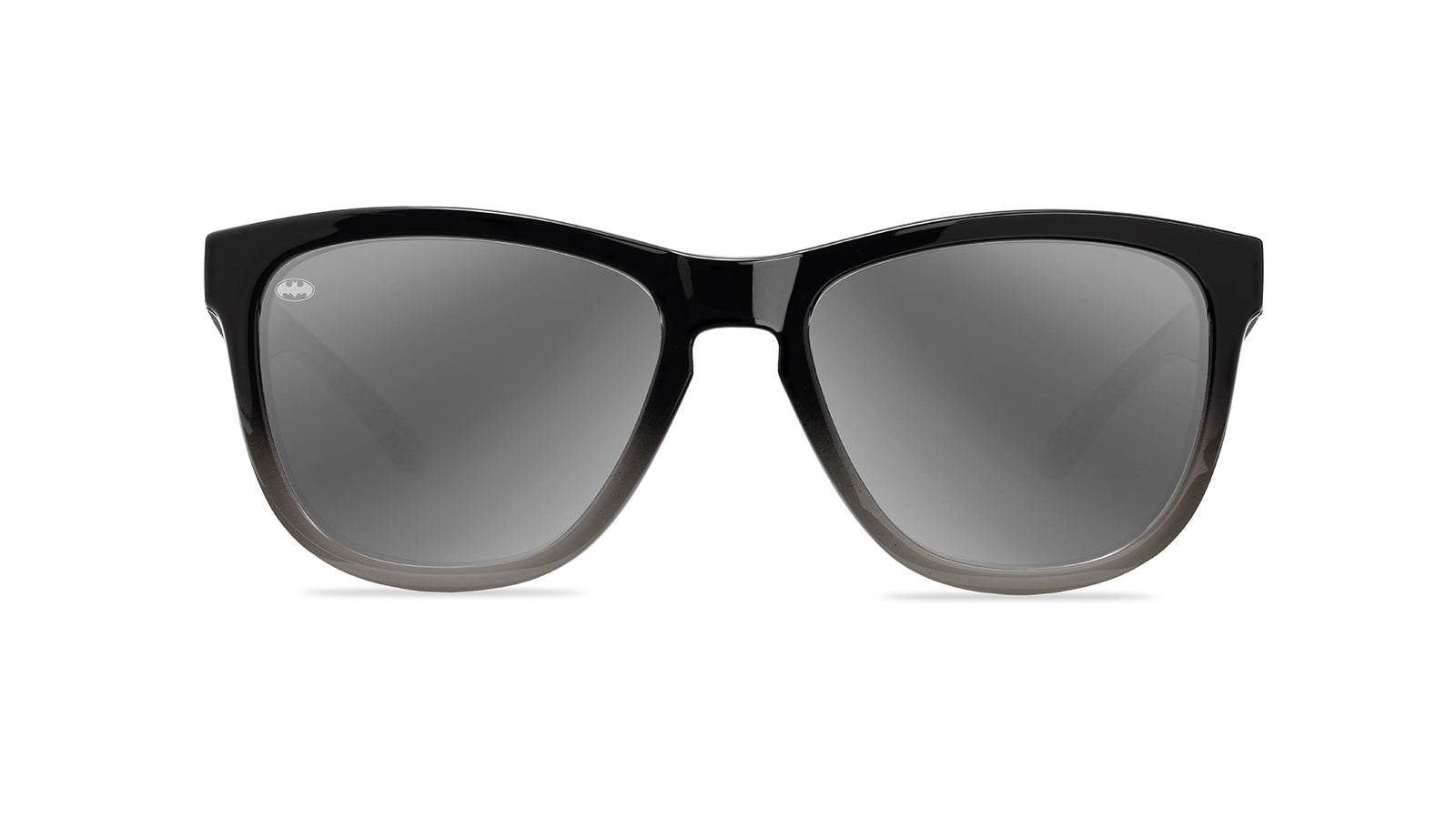 The Batman Kids Premiums are a must-have for any growing comic fan. This pair takes inspiration from the edgy darkness of D.C. Comics’ most popular vigilante, starting with black-to-gray fade fronts. The color scheme continues down each arm, where a swarm of bats fly over a black and gray background. Batman’s iconic yellow crest is prominent on the outside of each arm, while the Batman logo is displayed on the inside of each arm over a black and gray comic strip scene. Polarized Gotham Silver lenses and silver hardware round out this gritty, yet highly wearable pair.