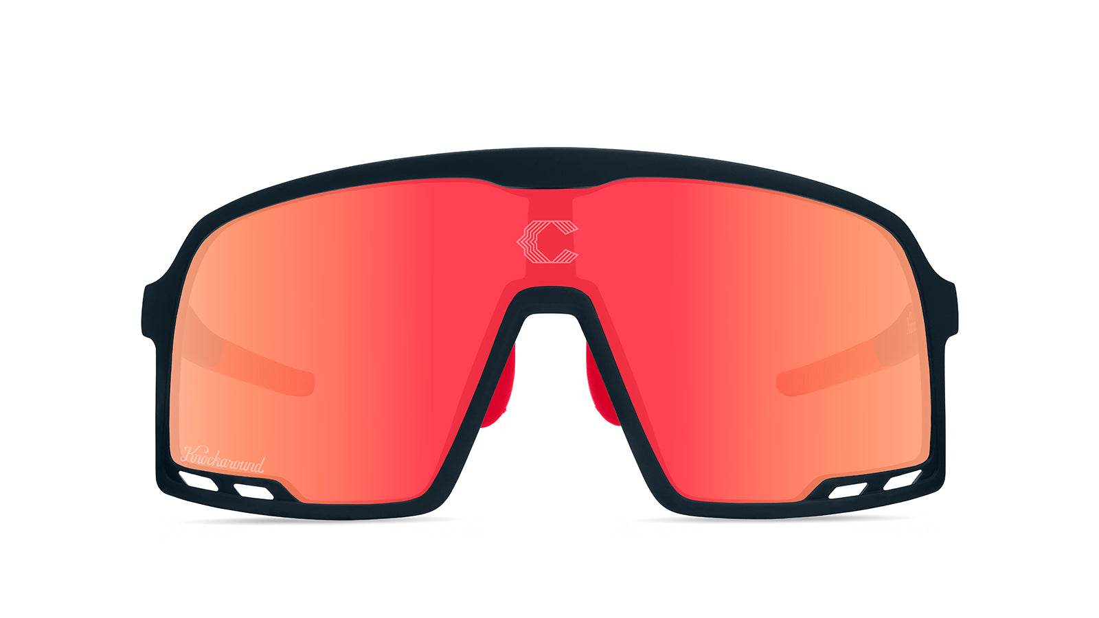 Turn up the temperature with our Cincinnati City Connect Campeones. These bold black frames with fiery red accents capture the intensity of Reds baseball in a sleek, performance-driven design. Built with Knockterra™ lenses that enhance visual clarity, these shades deliver major league vision for every pitch and play. The lightweight construction and adjustable nose grips provide all-day comfort from the first inning stretch to the final out, while the wraparound coverage ensures maximum protection with minimal distortion.