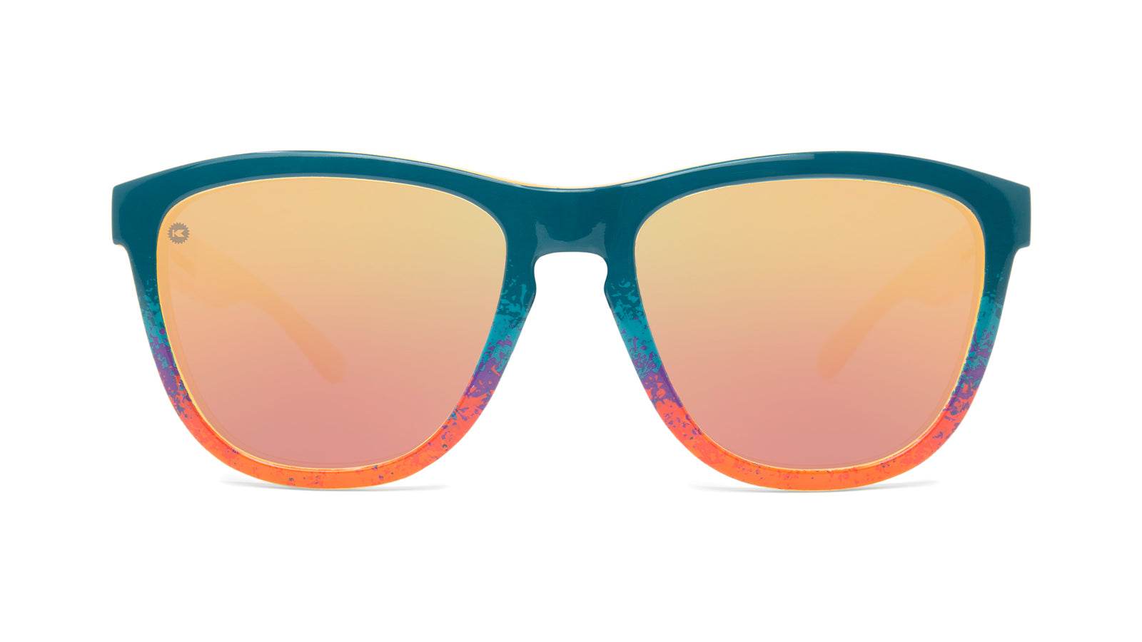 Inspired by the deep, vibrant sunsets of California's golden deserts, these vivid shades will be right by your side the next time you decide to take a hot midday run (more sweat, more fun, right?). A speckled sunset fade paints the front of the frame, then blends seamlessly down the arms, mimicking the unforgettable colors of a soon-to-be-twilight sky. Knockaround Sport frames are lightweight, comfortably fitted, and look great on most face shapes. Go the extra mile in style when you add Premiums Sport shades to your running routine (just make sure to drink lots of water!).