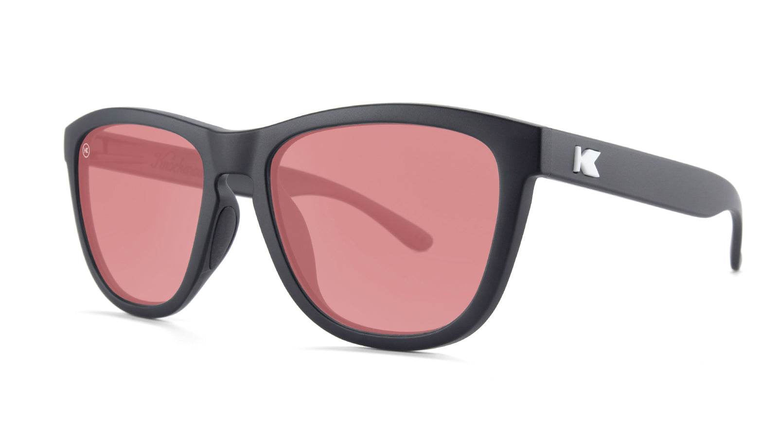 Let performance come alive once you pop on a pair of our fanciful Fairway Premiums sunglasses. The sky’s the limit with rubberized black frames and white ‘K’ detailing for extra dazzle in these delightful rosy shades. Don’t be fooled by their blushing hue–these sunglasses still come equipped with UV400 protection and impact resistance, plus they’re resistant to both oil and water stains for added convenience. Plus, with color enhancing lens tech, they’re perfect for a day on the golf course, or any other sport!