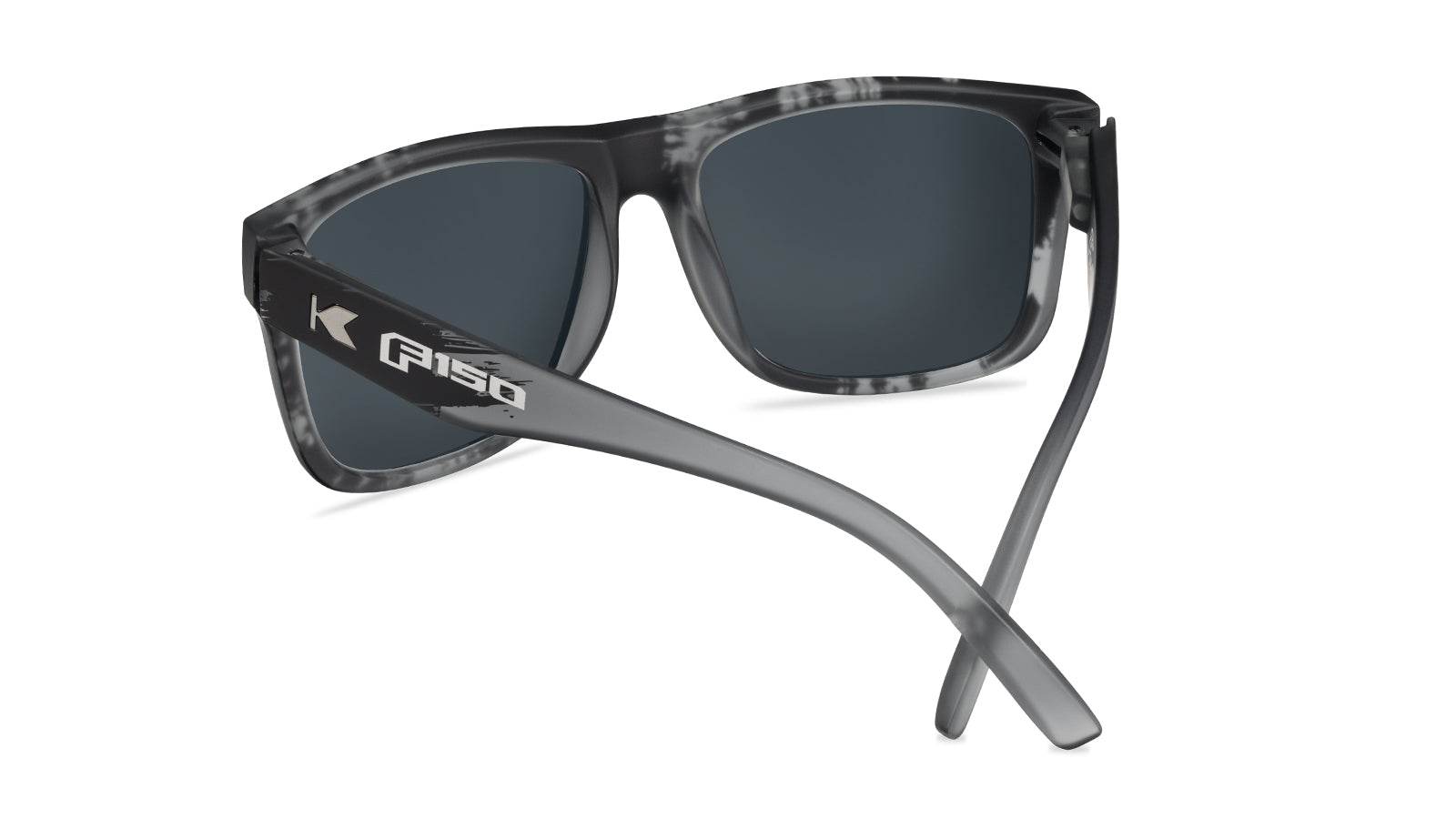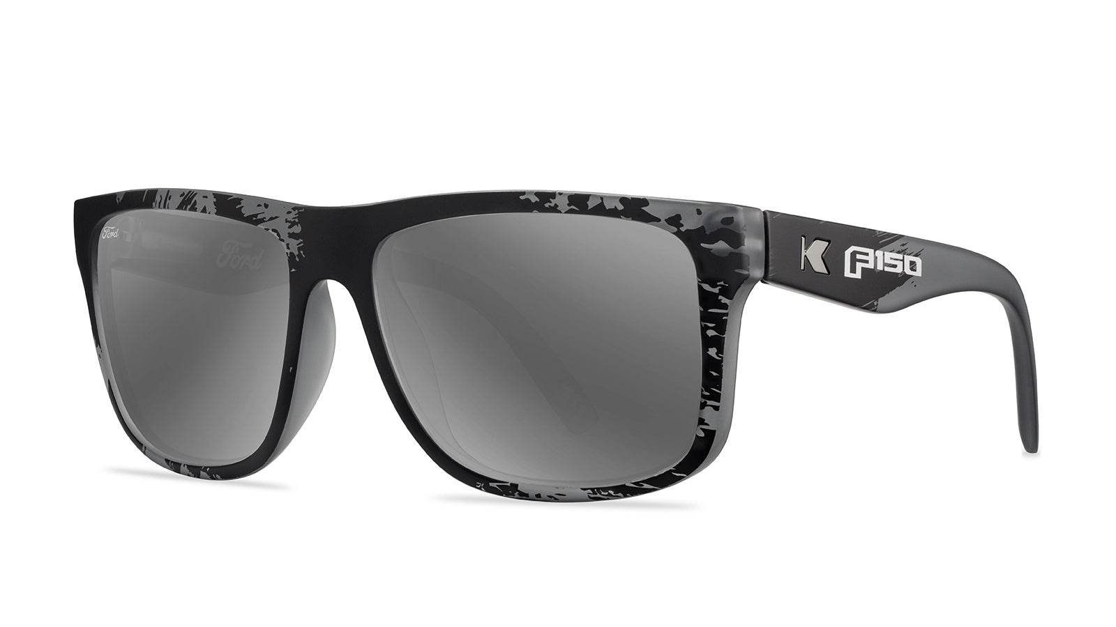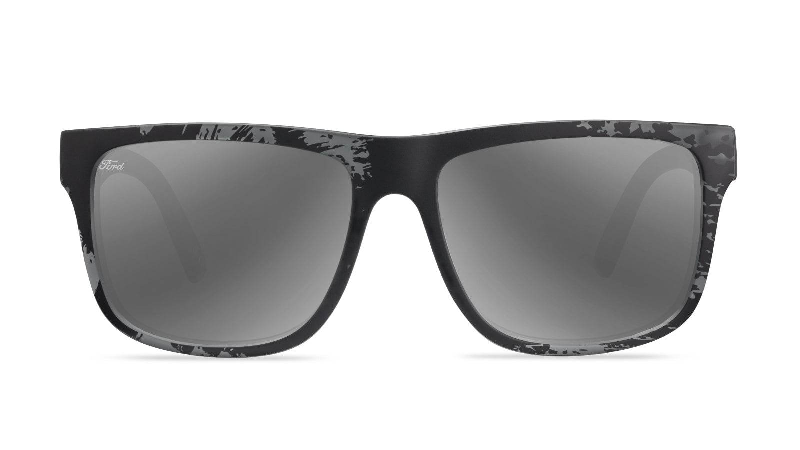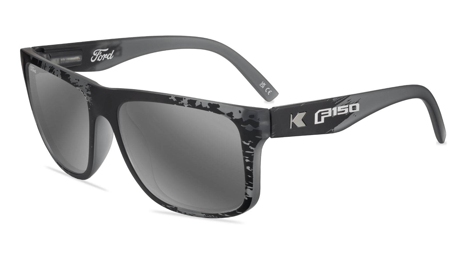 Ford F-150 Torrey Pines are designed and built for the bold and the brave. These frames sport a semi-transparent gray base with a unique black "off-road" splatter pattern, mirroring the ruggedness of the F-150. Ideal for large faces, the frosted finish adds a sleek, modern touch. Adorned with the distinctive F-150 logo on the arms and the iconic Ford logo inside, these sunglasses feature Silver Smoke lenses, ensuring you're ready for any adventure, just like America's beloved truck.