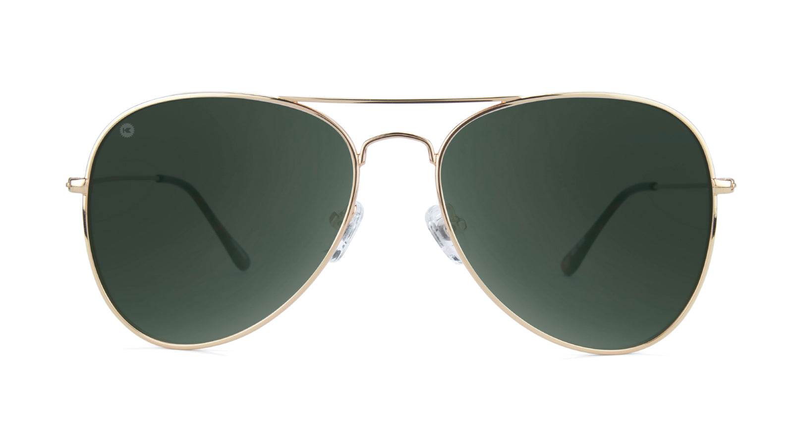 With crystal-clear optics thanks to the polarized lenses, and all-day comfort thanks to the rubber ear pads, these gold aviator sunglasses with green lenses are sure to become your new go-to eyewear. They feature a classic and timeless aviator shape plus rubber tortoise shell detailing for an extra pop of style. Plus, every pair of pilot-inspired aviator sunglasses from Knockaround is finished with impact-resistant, UV400 protection lenses to keep your eyes safe. Just add your favorite bomber jacket and you're all set.