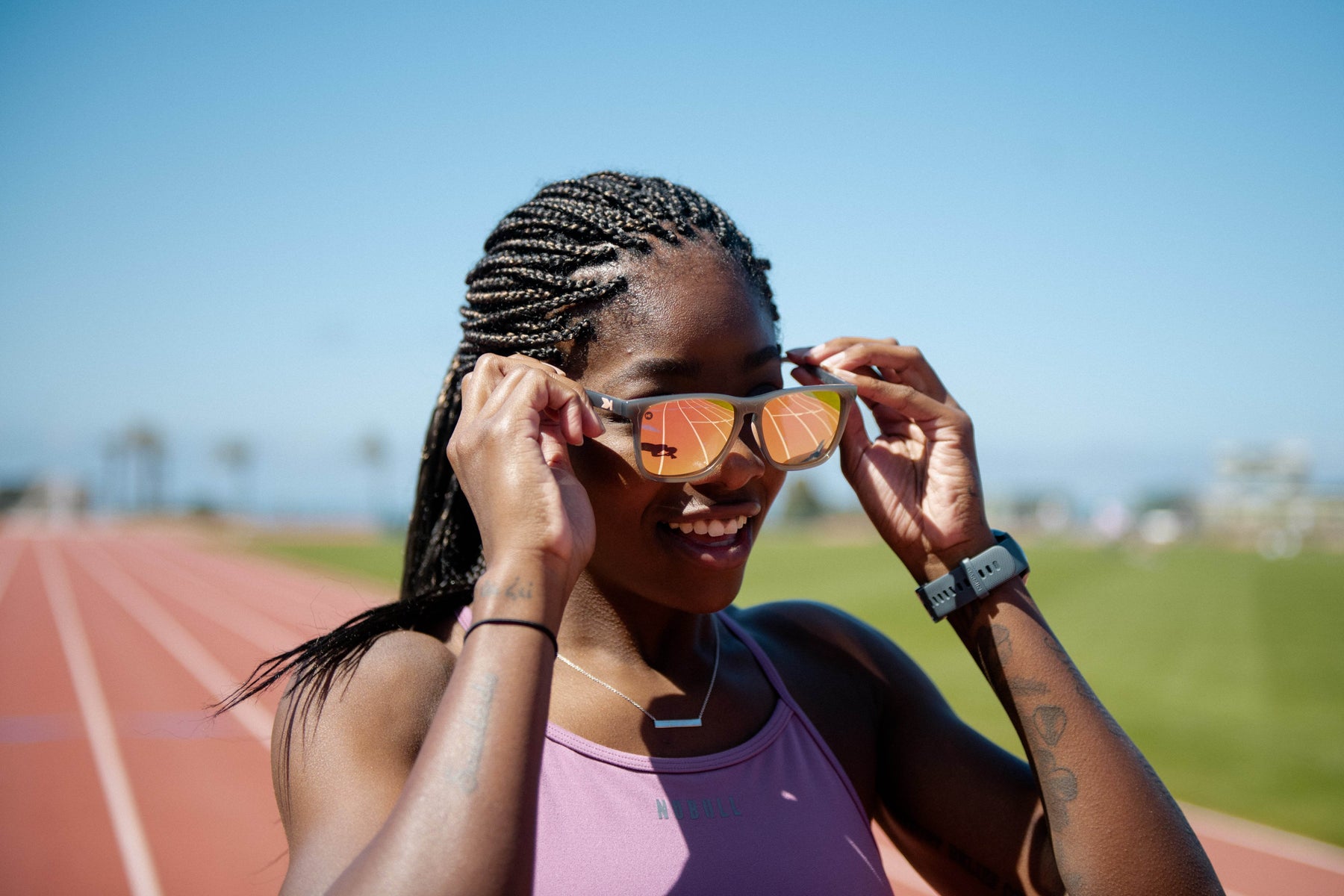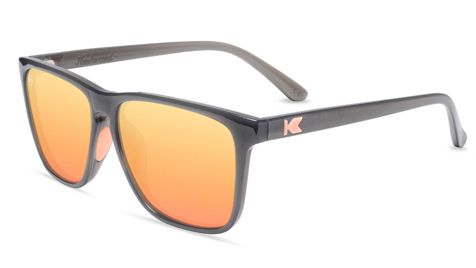 Life in the fast lane just got a sporty makeover. Our daredevil Fast Lanes Sport feature the rectangular lenses you’ve come to love from this style, with the added benefit of red rubberized nose pads so your shades will stay in place no matter what. Even better, we’ve made the peach lenses polarized and wrapped it all in jelly grey frames for comfort and style. Medium to larger face shapes will appreciate the perfect fit offered by Fast Lanes Sport frames.