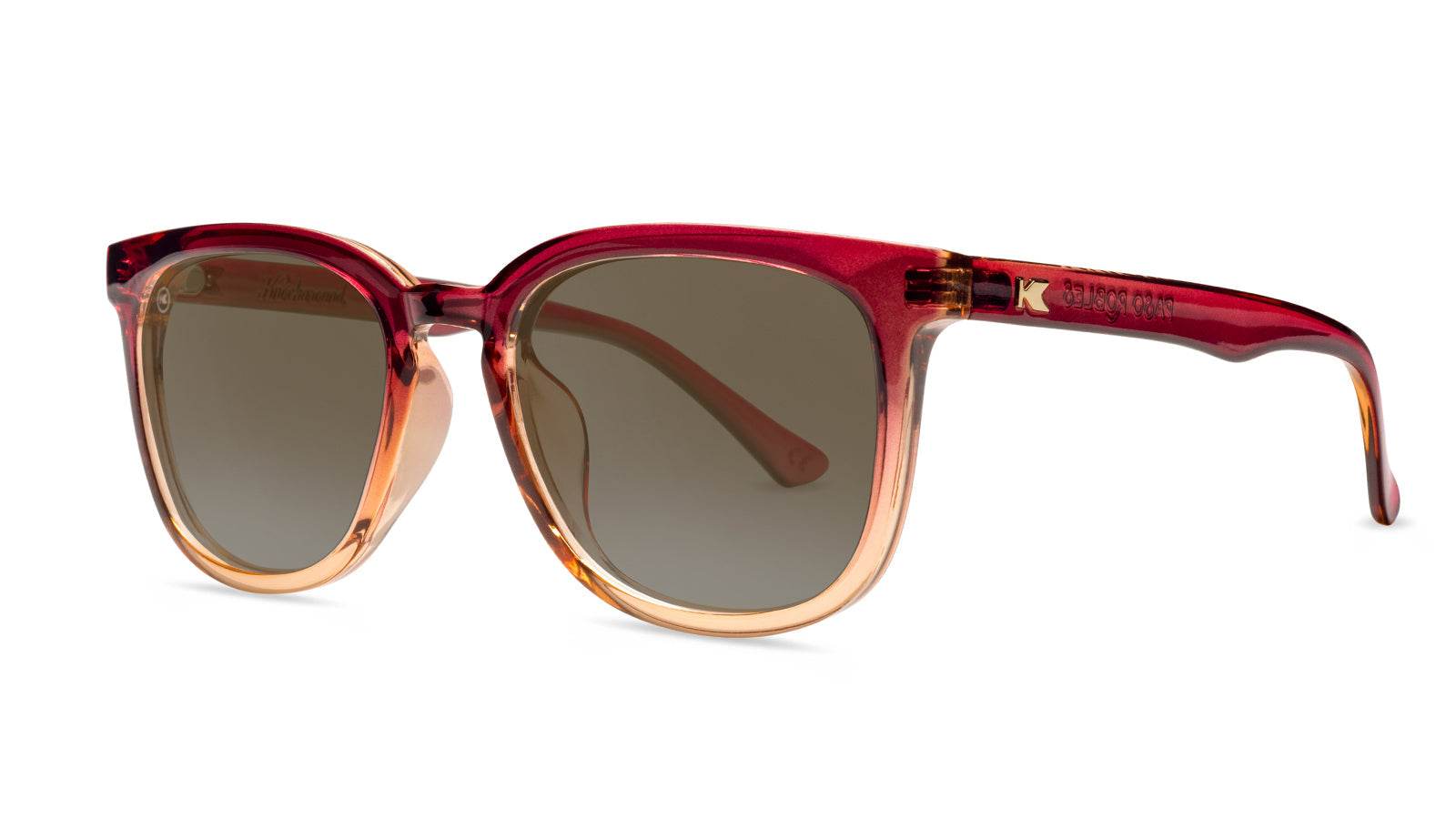 My oh my, aren’t these a pair of shades?! Just look at the fiery red frames that fade into pink tones, and the polarized amber gradient lenses waiting to show you things you’ve never seen before. They almost don’t need the inlaid gold hardware, but who’s going to say no to a touch of gold? Put together, you have the perfect combination for our Paso Robles frames, which are designed to impress.