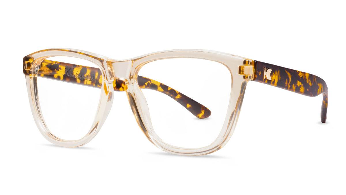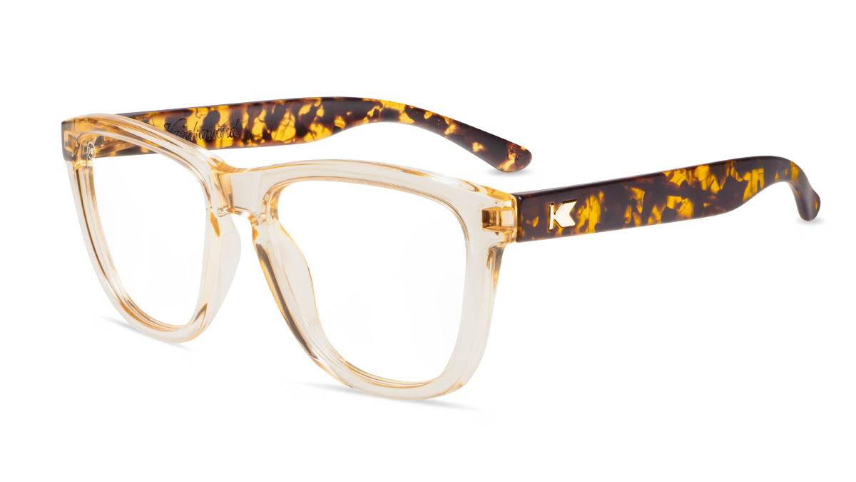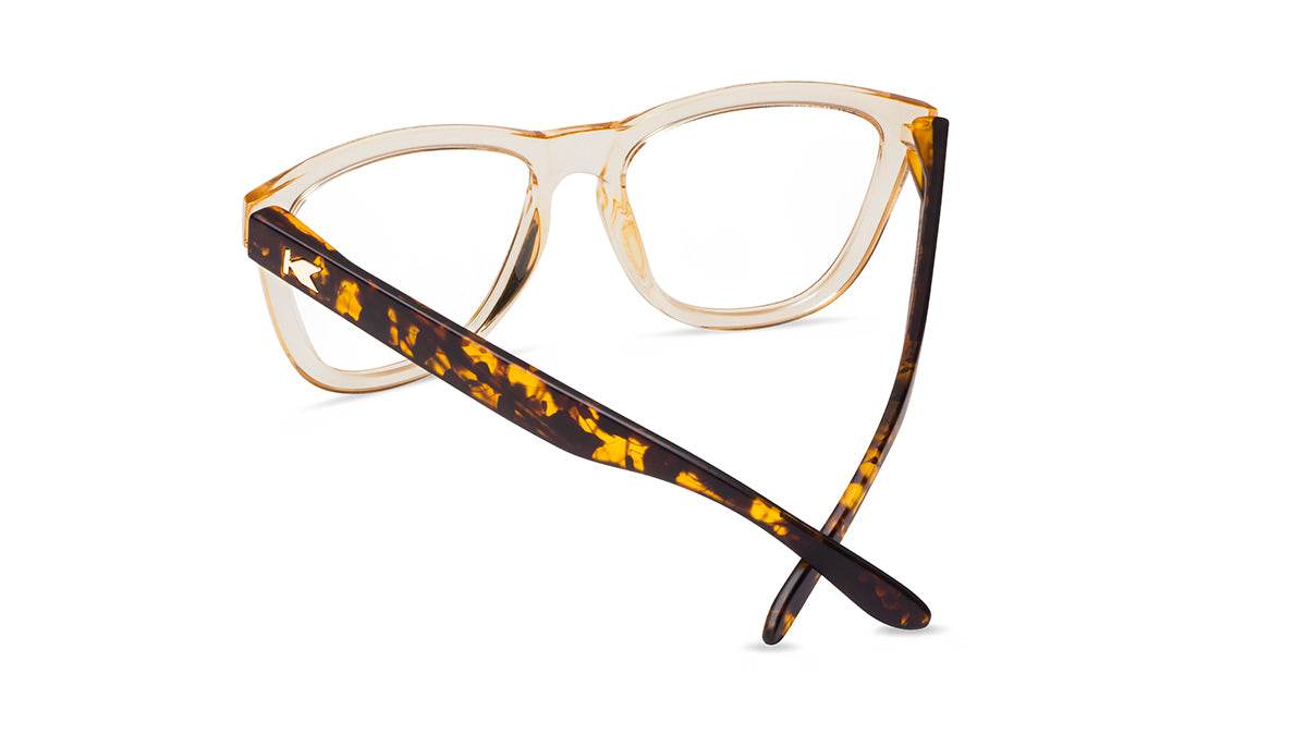 Reviewing some material and need to look chic? Look no further than our On the Rocks Premiums Readers for a polished presence every time. Just like their shaded counterpart, these glasses feature tortoise arms, gold ‘K’ detailing, and transparent amber front frames with a slight honey tint. Our readers feature all the best parts of our Blue Light Blockers, combined with four magnification strengths between +1.00 and +2.50 depending on your needs. Now your conclusions won’t be your only stunning feature.