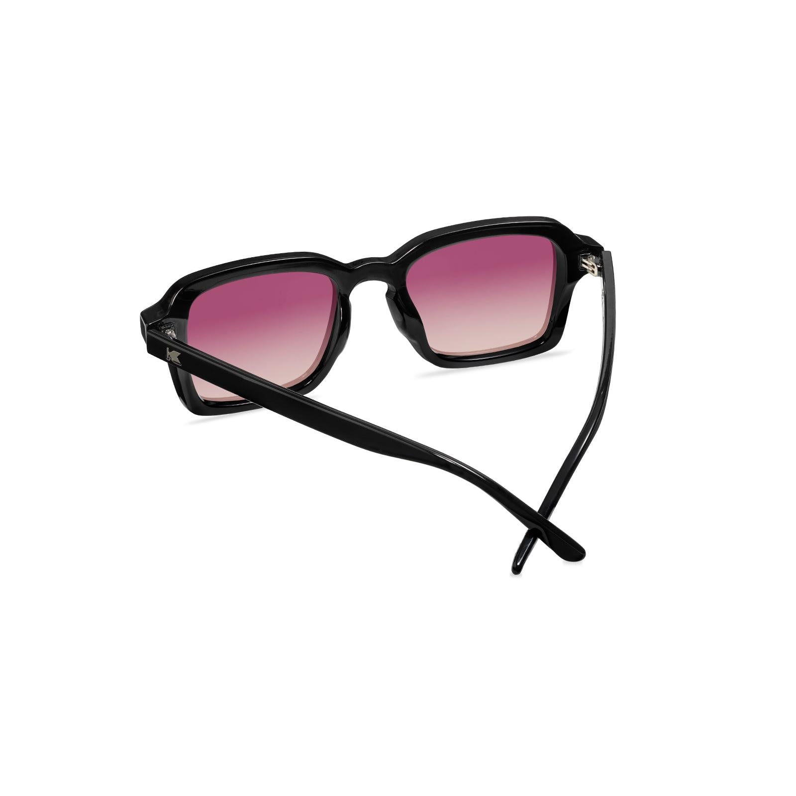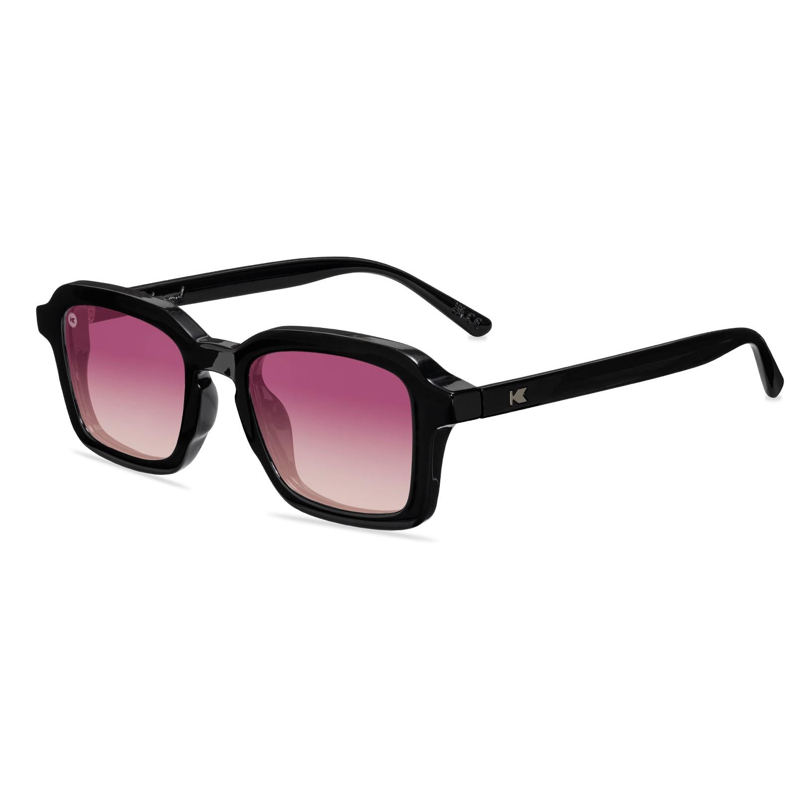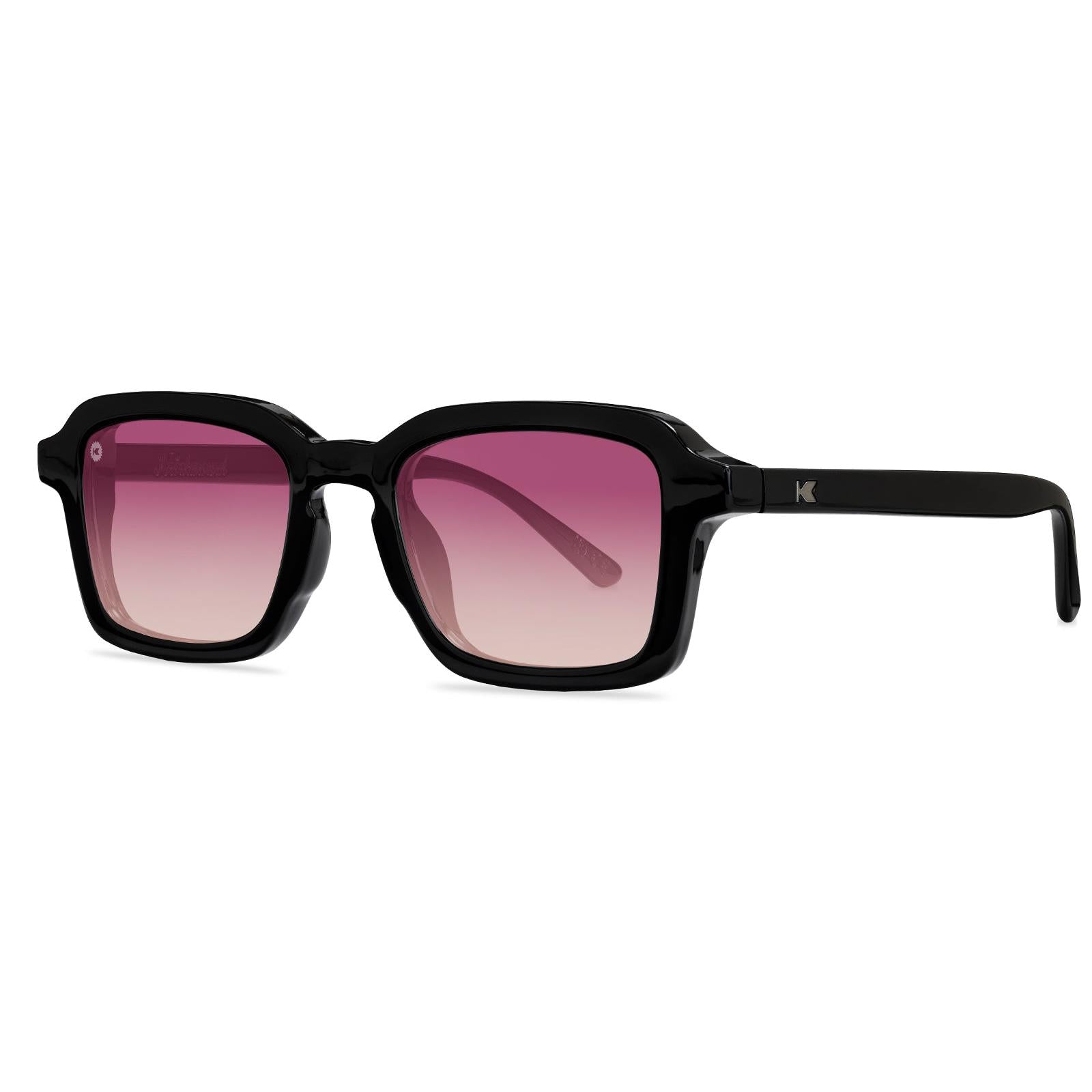 Pop on a pair of Persuasion Panoramas and see the world through the darkest of rosy hues. Maneuvering with mystique is effortless thanks to solid black frames throughout these polarized sunglasses, plus neutral gunmetal ‘K’ detailing for a nod to your style choices. Sangria fade lenses offer polarized UV400 protection and impact resistance for all those unexpected forays into the unknown. We’ll leave it up to you to decide where your enchanting vibes guide you next.