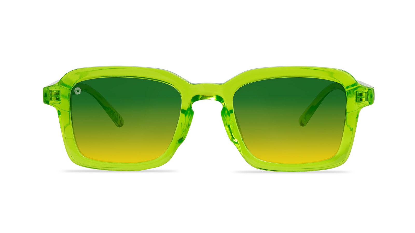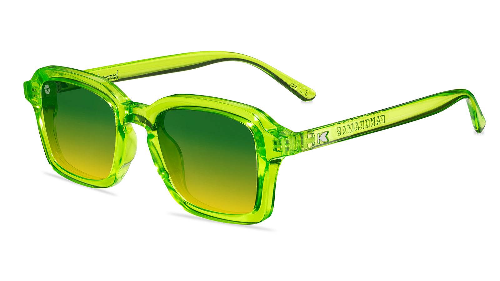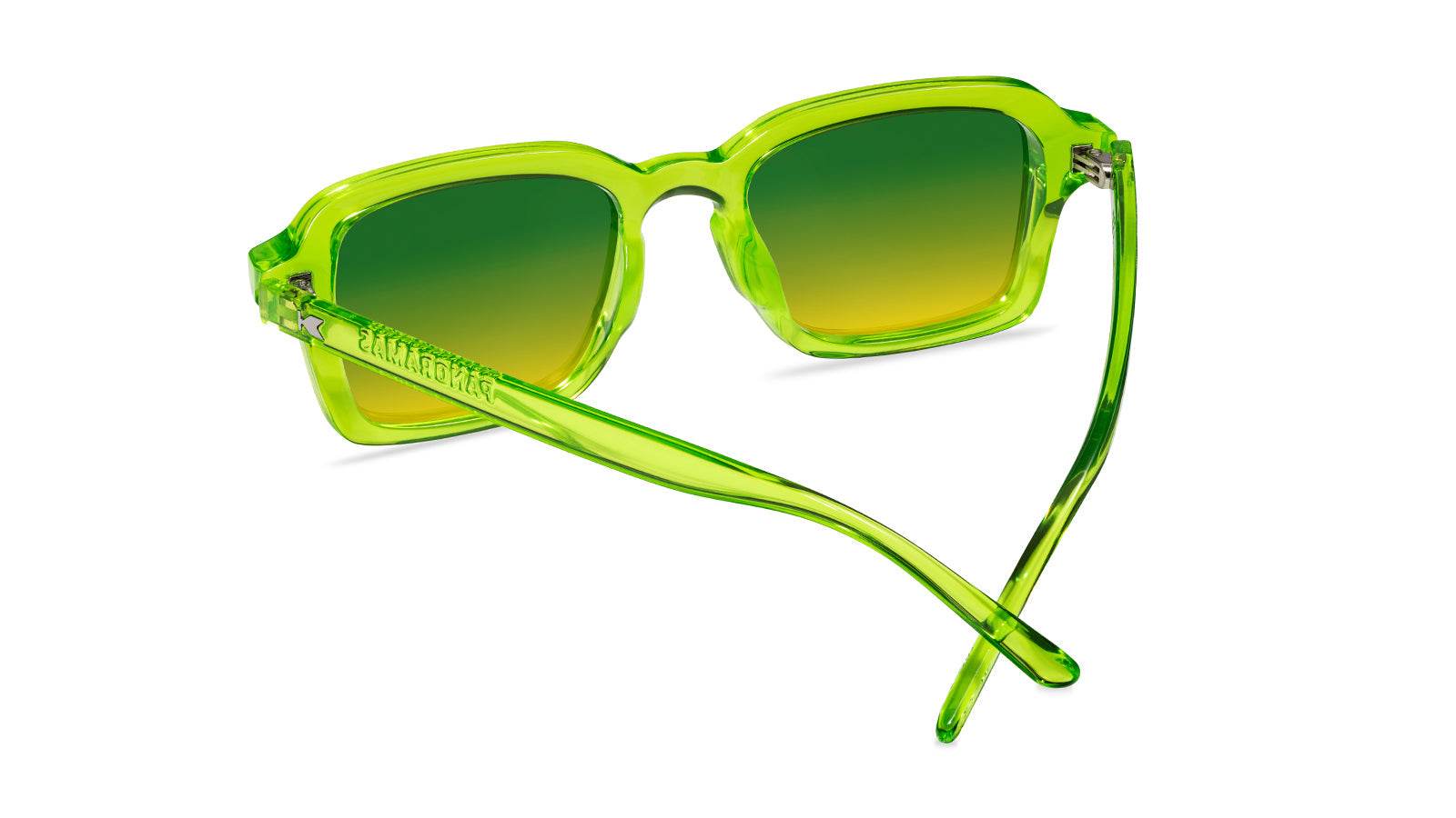 Loud and ready for anything, our Pucker Up Panoramas sunglasses embody sour candy in the form of stylish sunglasses. Bright lime frames throughout make a statement for anyone privy to your neon daydream, while silver ‘K’ accents show off your impeccable taste. Lemon-lime lenses tie the entire extravagant look together, along with the impact resistance and polarized UV400 protection that’s always standard on our shades. Consider us ready for your next bucket list thrill ride.