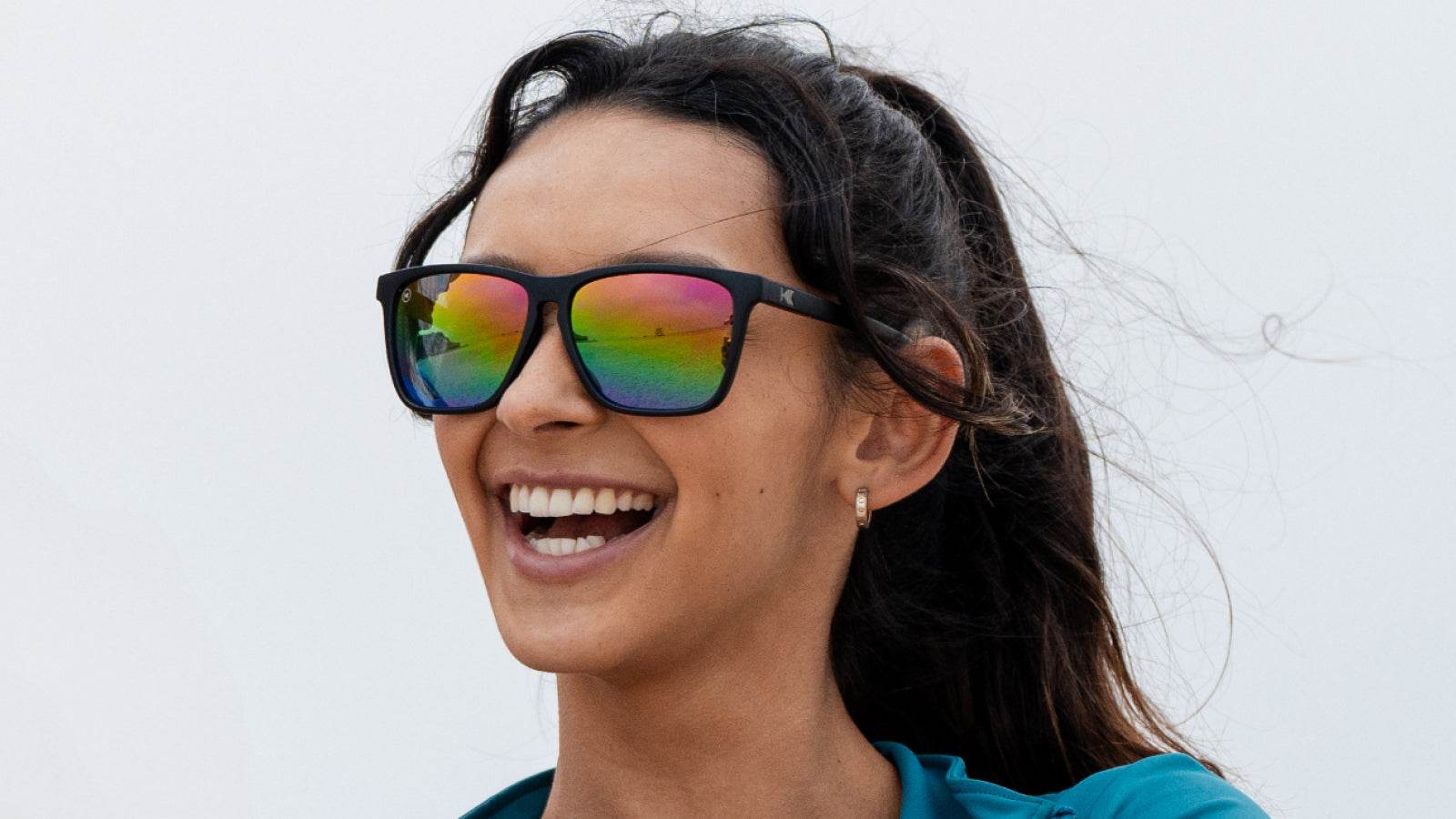 Built for dashing speed and effortless style, our Rainbow on Black Fast Lanes Sport sunglasses are here to shine bright. All those far flung adventures ahead of you won’t know what hit them thanks to the perfect combination of fierce and refined. Sleek matte black frames are accented with subtle gunmetal K logos. Vivid polarized rainbow lenses, complete with full UV400 protection, are here to stay no matter how far off road those auspicious day trips take you. Pics or it didn’t happen.
