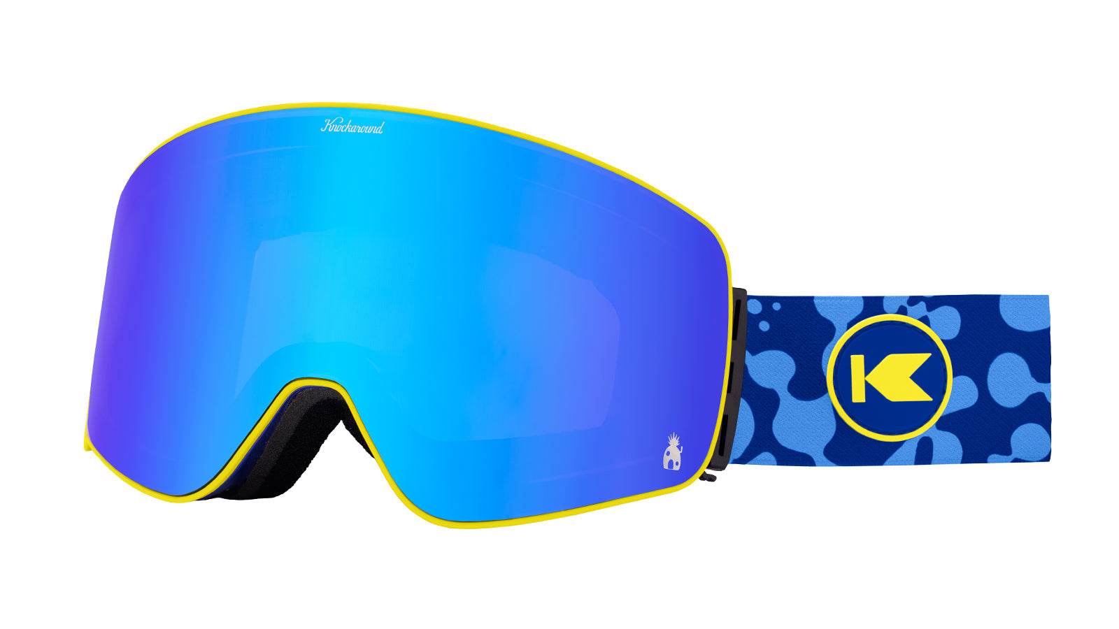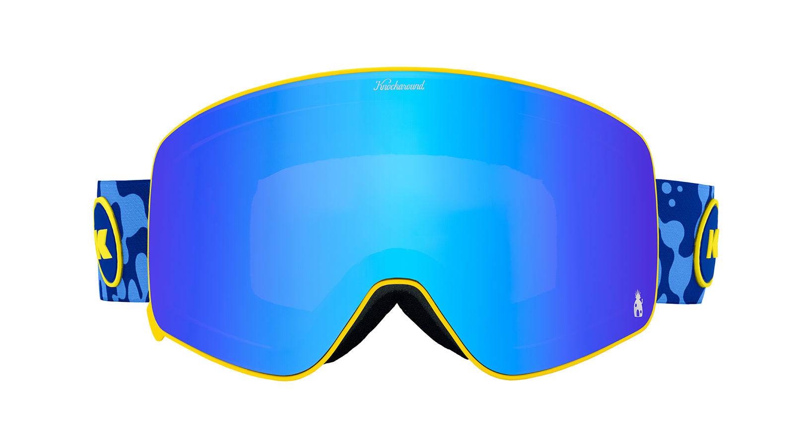 Dive into snowy adventures with the SpongeBob SquarePants Slingshots! These snow goggles combine top-notch performance with the playful energy of Bikini Bottom’s most beloved resident. Featuring a cylindrical, blue mirrored lens that’s ideal for sunny days with a Visible Light Transmission (VLT) of 10.8%, you’ll have clear visibility as you make your way down the slopes. The adjustable 45mm elastic strap showcases SpongeBob’s signature grin against a vibrant blue background, letting you channel his infectious enthusiasm with every run.