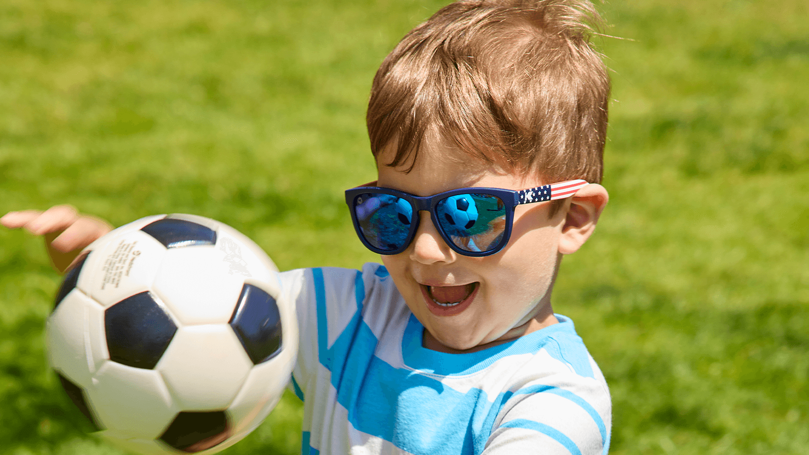 Your star spangled munchkin will look adorable in these American flag inspired kids sunglasses! Modeled after our popular Premiums frame shape, our Kids Premiums shades feature black front frames, red interiors, star spangled and striped arms, and polarized blue mirrored lenses that are FDA approved impact resistant. You can also count on Knockaround Kids sunglasses to include full UV400 protection to keep their little eyes protected. For a matching pair that you can wear with your mini-me, check out our full Star Spangled Collection.