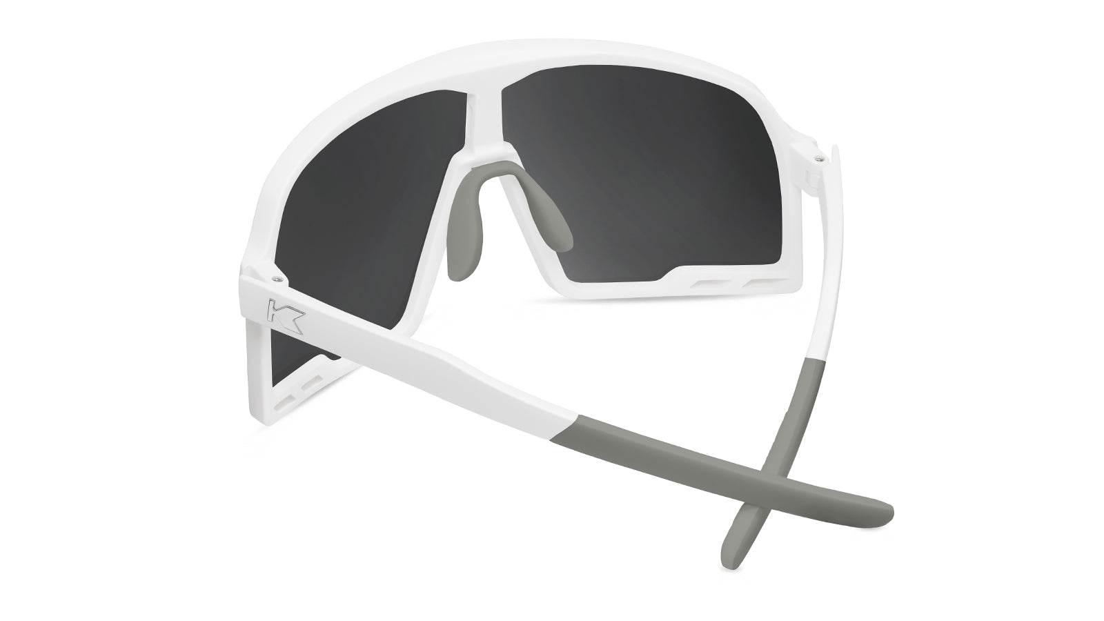 Catch everyone’s eye with a pair of wraparound Starlight Campeones! The one-piece, rose gold lens features Knockterra technology so that water and oil smudges are only a distant memory. Bright chrome ‘K’ logos accent rubberized gray ear & nose grips for an extra sturdy pair of performance sunglasses. The whole package is brought together with a crisp white rubberized frame. Now who’s ready to steal the show?