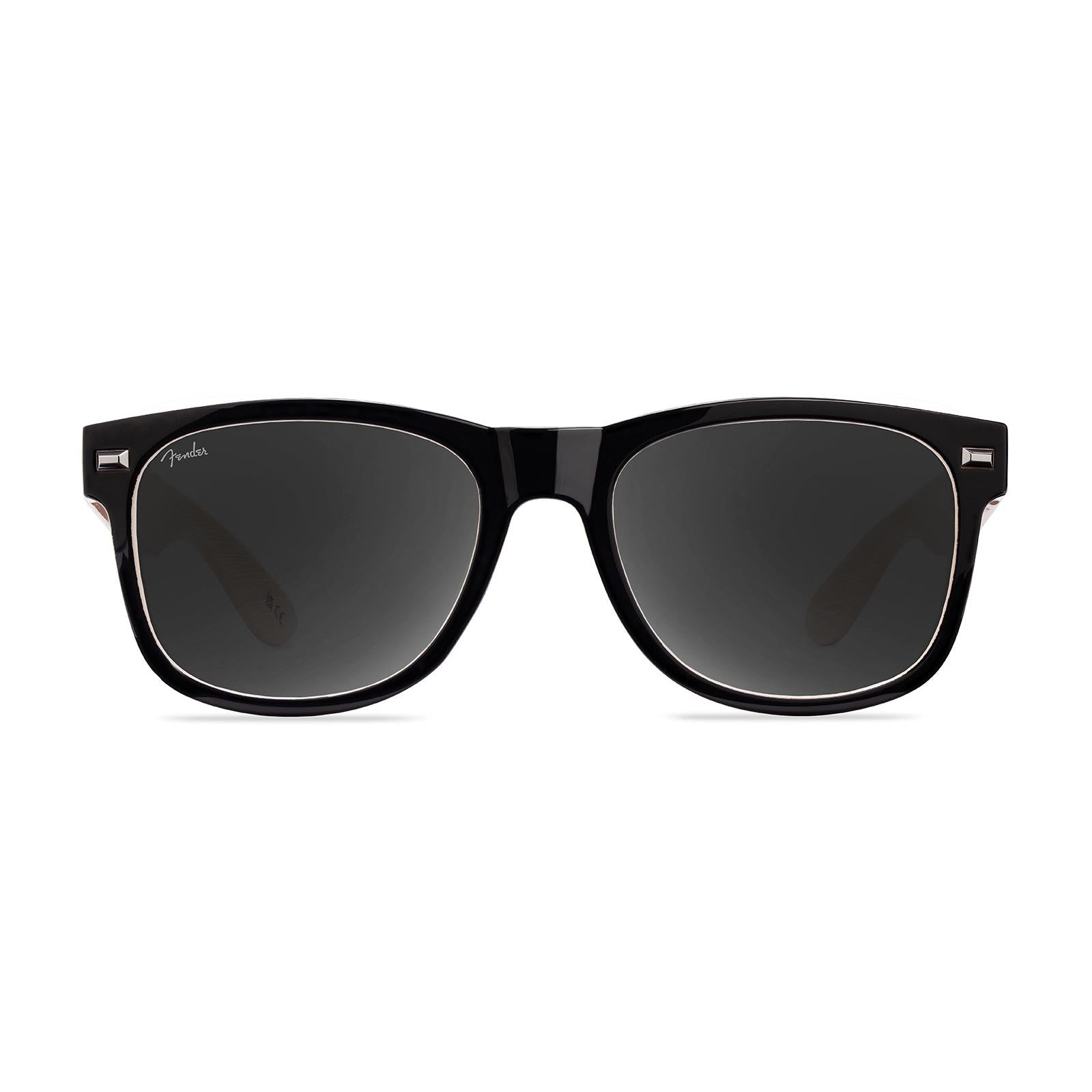 Inspired by the legendary Fender® Stratocaster™, these Fort Knocks hit every note of cool with their guitar-neck arms and fretboard detailing. Just like a Strat bridges the gap between bluesy lows and screaming highs, these shades blend iconic black and white fronts with a touch of vintage wood grain, mirroring the guitar's timeless body. A Fender® logo on the inside of the arm celebrates the brand’s profound impact on music history. Silver hardware and the iconic Fender logo etched on the lens round at this sweet pair of shades.