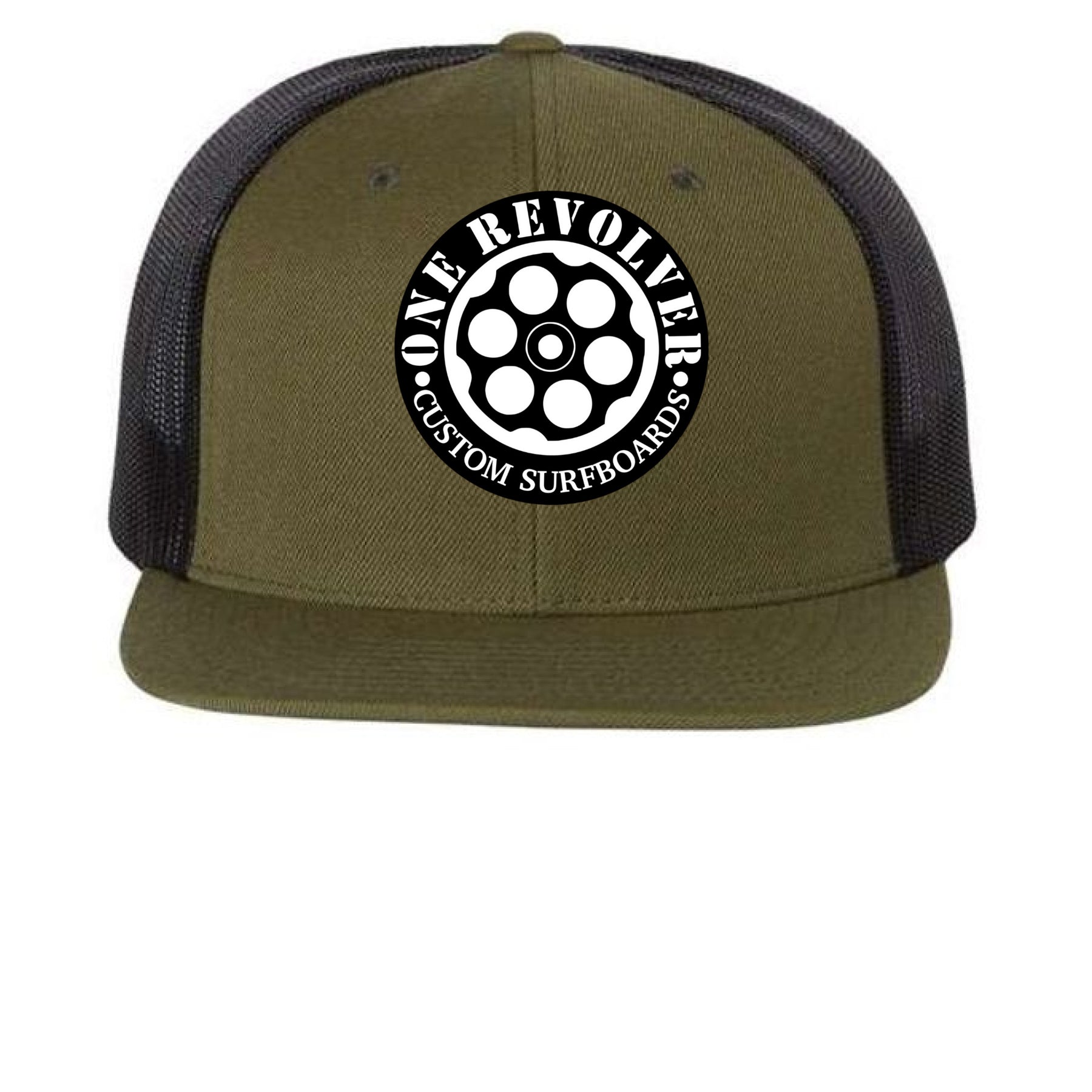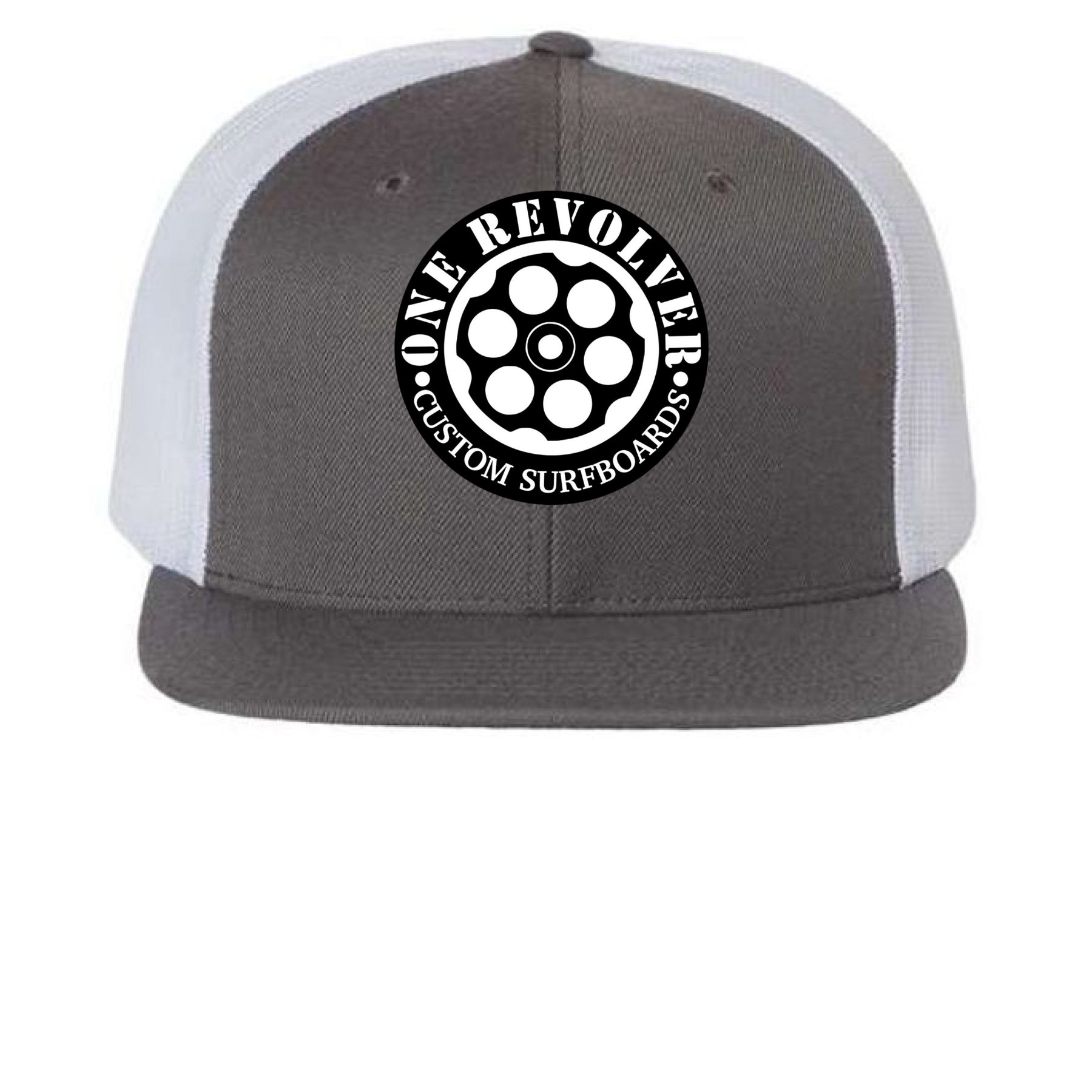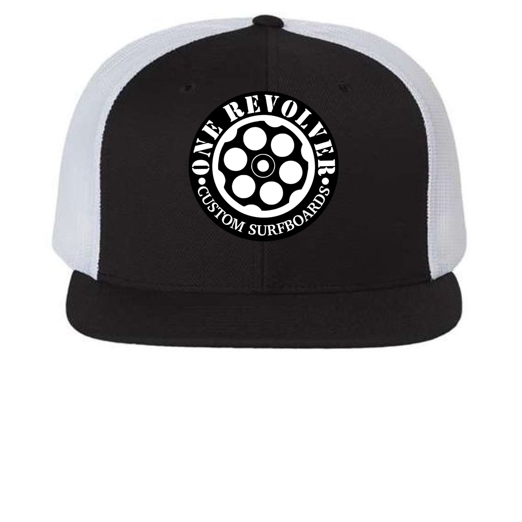 Turn heads from the lineup to the streets with the One Revolver Surfboards Flat Bill Snapback Hat. This high-profile trucker cap combines a classic surf aesthetic with modern style — perfect for surfers, skaters, and anyone who lives for coastal adventure.