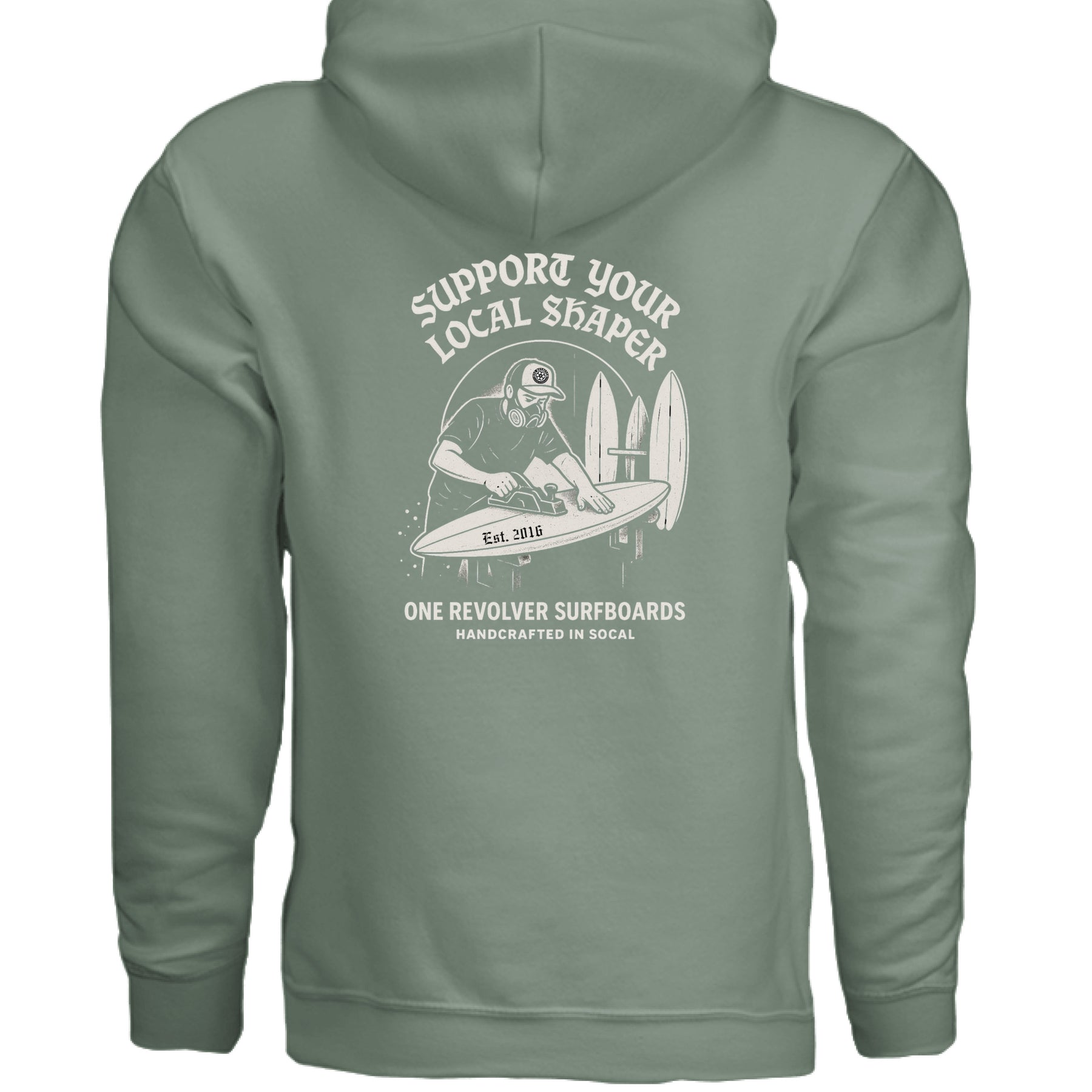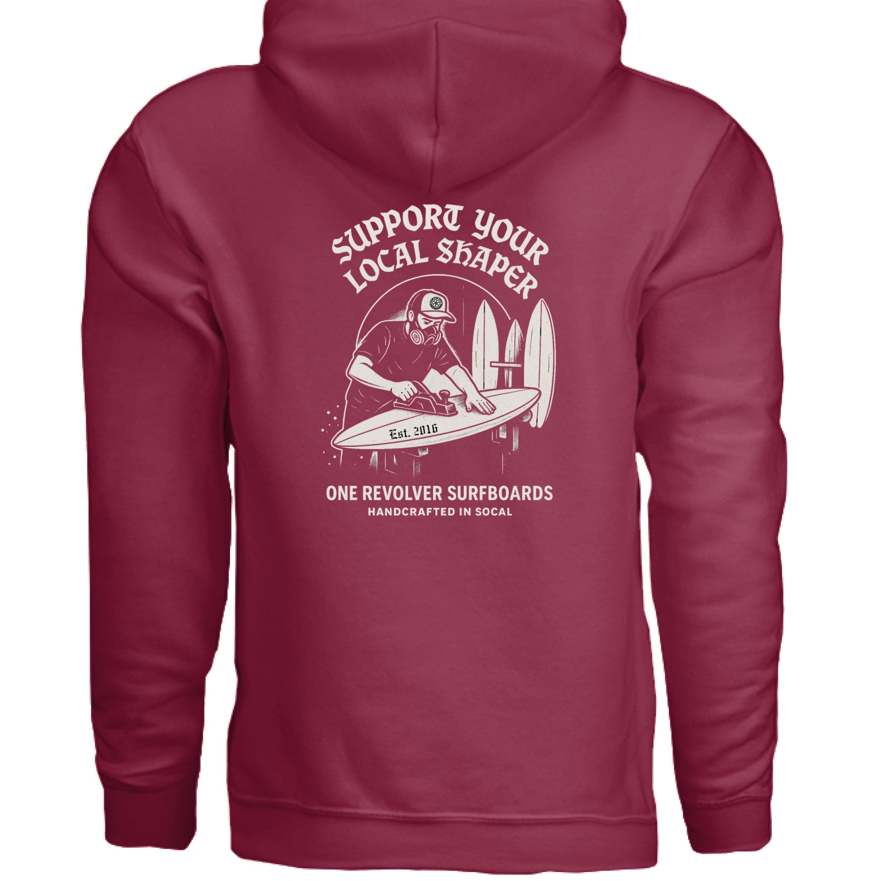 The One Revolver Surfboards Support Your Local Shaper Hoodie honors the hands behind every board. Made with softstyle fleece for a lived-in feel, this unisex pullover brings warmth and surf pride to cooler days.