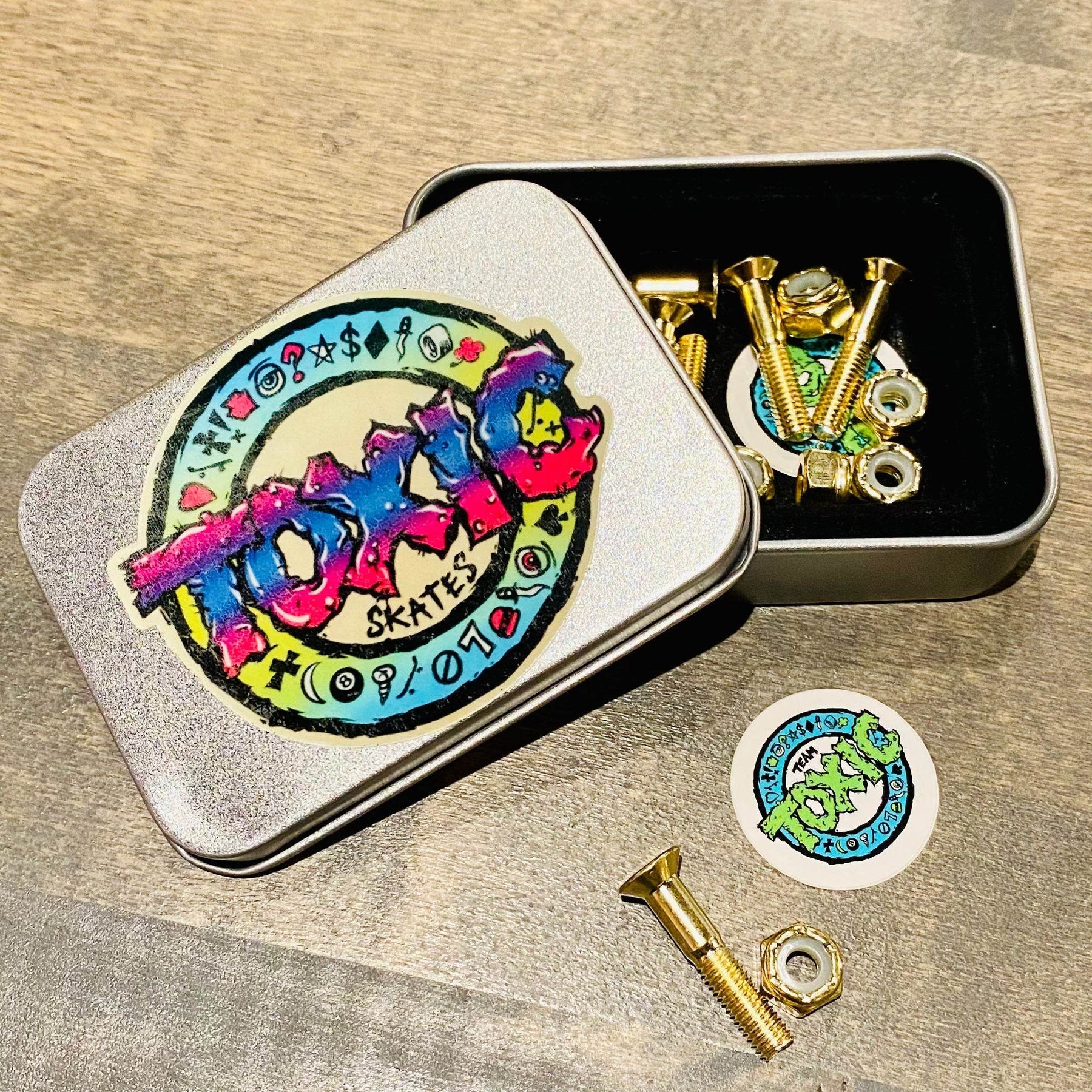 Toxic, Shorty's, Lucky, High Energy, Iron Horse- 16 piece mounting hardware sets. Includes 8 screws and 8 nuts and a sticker.