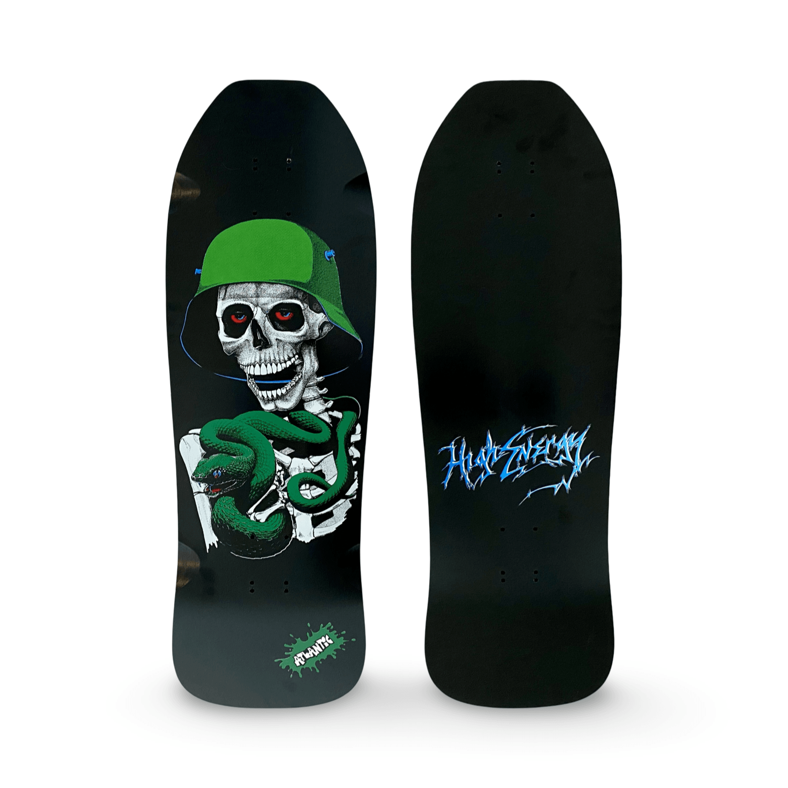 PLEASE NOTE: Our reissue decks are HAND SCREEN PRINTED and each and every one is slightly different. Colors and fades in the graphics vary from one to the other and the deck you receive may not look exactly like the picture provided. These are not heat transfer duplicates, they are each amazing original hand-made works of art. Please ask if you have questions and ask for a pic of the deck you’ll receive if you’re unsure. We do not offer refunds unless a product is defective.