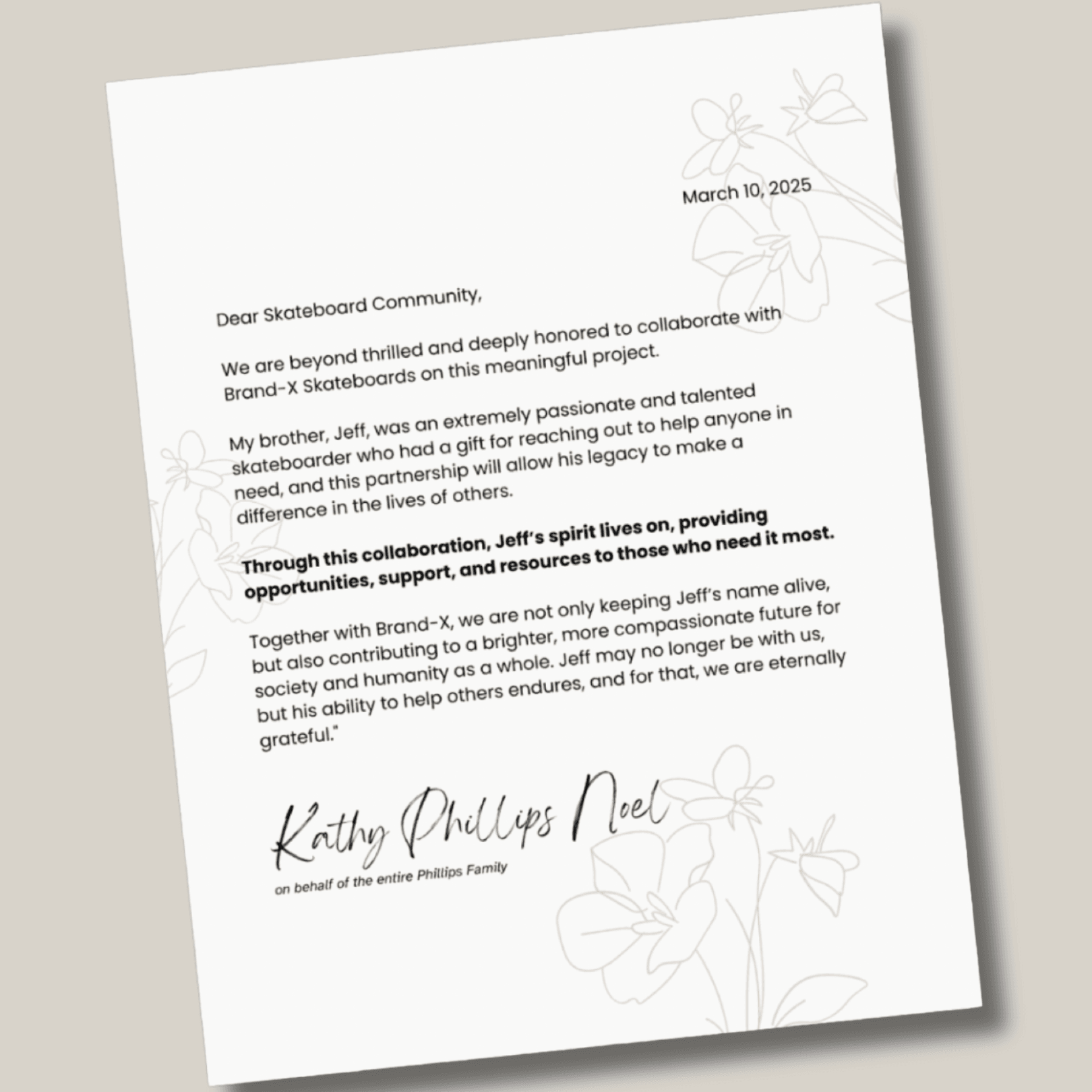 Proceeds from this product are being donated to non-profit organizations that empower youth through sports, which were hand selected by Jeff’s family.. READ THE LETTER FROM JEFF'S SISTER Kathy, in the pictures.