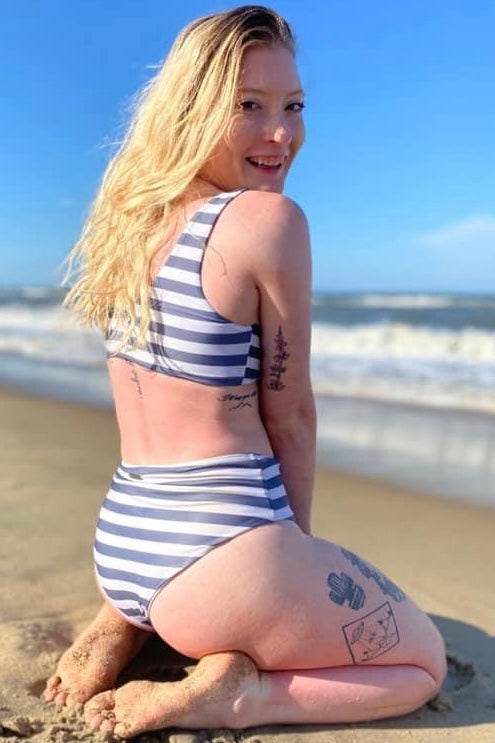 Time to set sail with these cute blue and white striped bottoms. With a higher waist and full coverage bottoms.