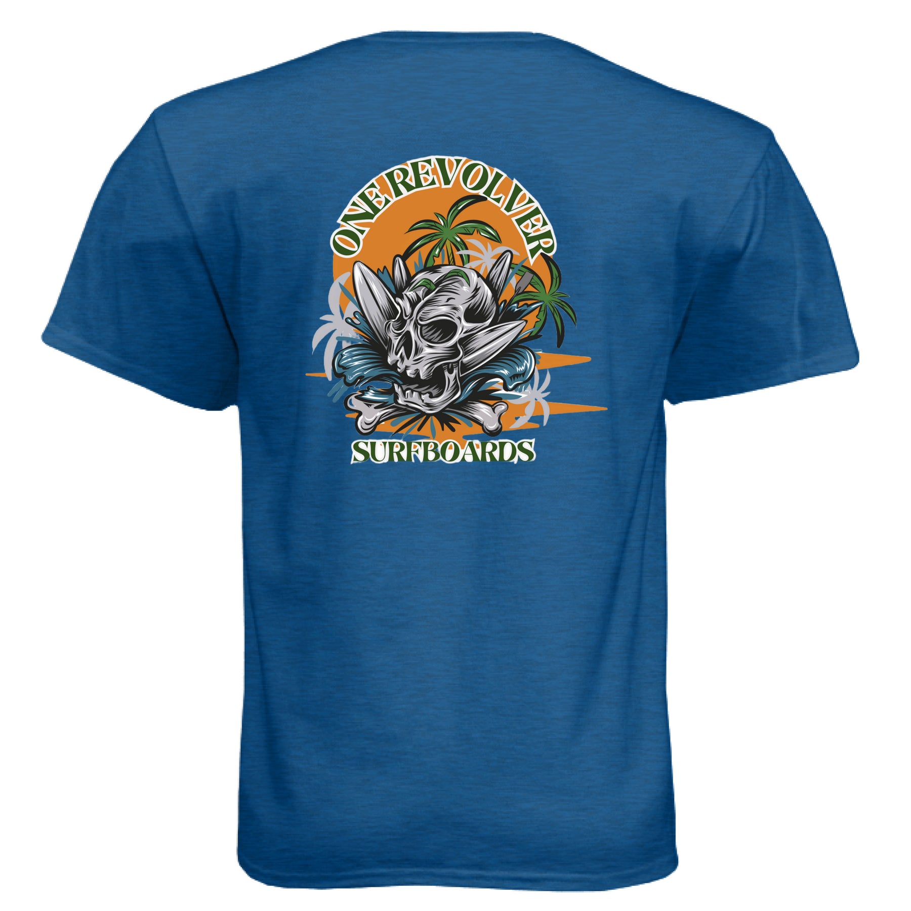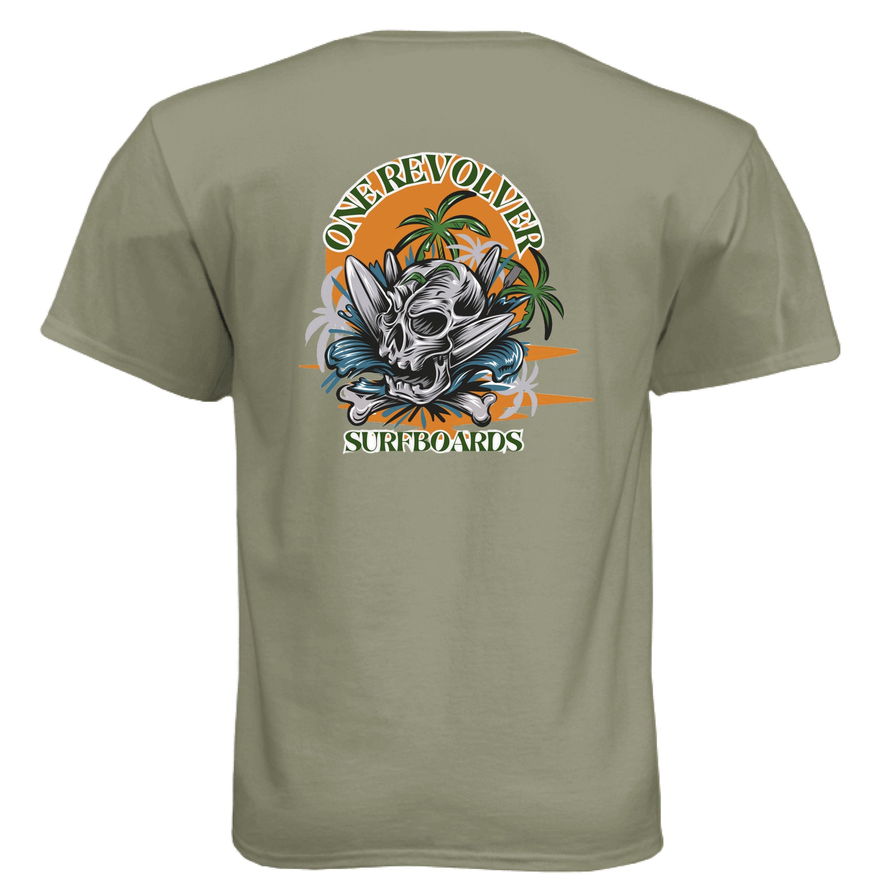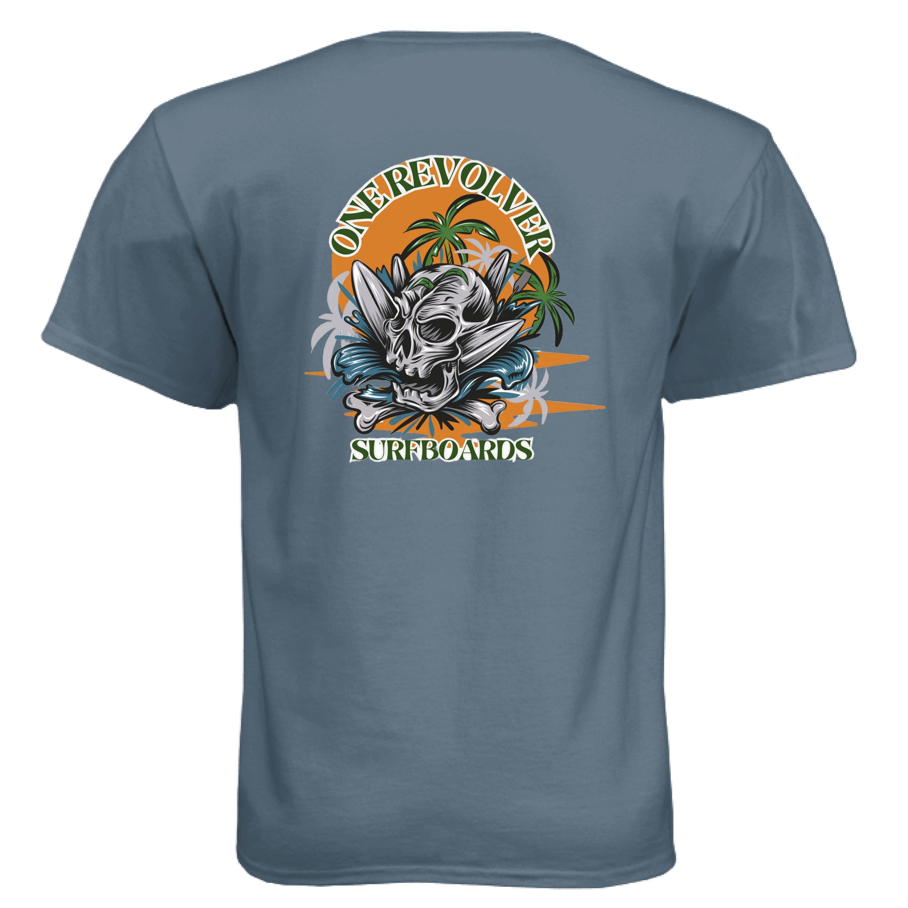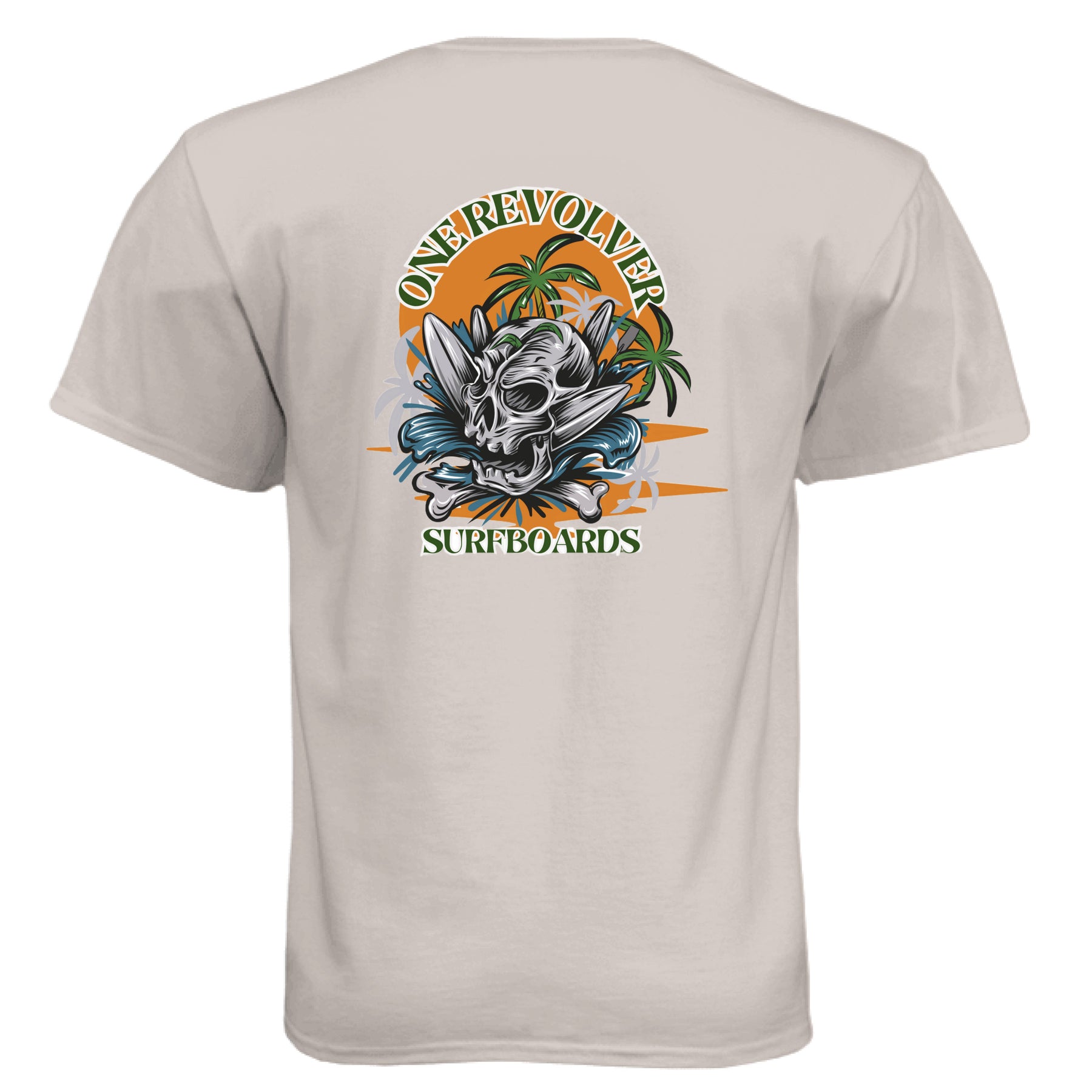 Make a statement in the One Revolver Skull Graphic T-Shirt — built for the surfer who charges hard and lives for the lineup. This bold design features a detailed skull, crossed surfboards, and a powerful background that captures the raw energy of surf culture.