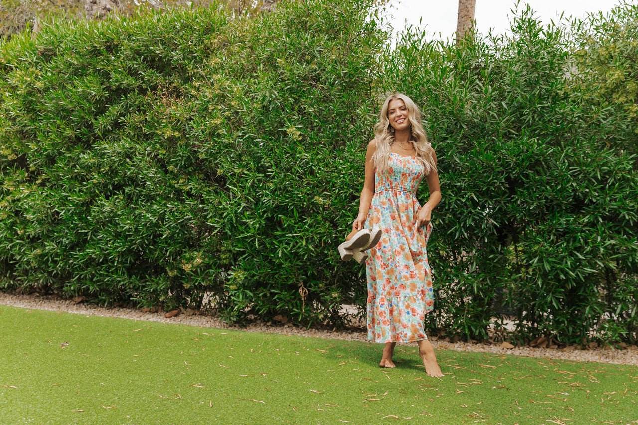 Caribbean Green Floral Smocked Maxi Dress-FINAL SALE