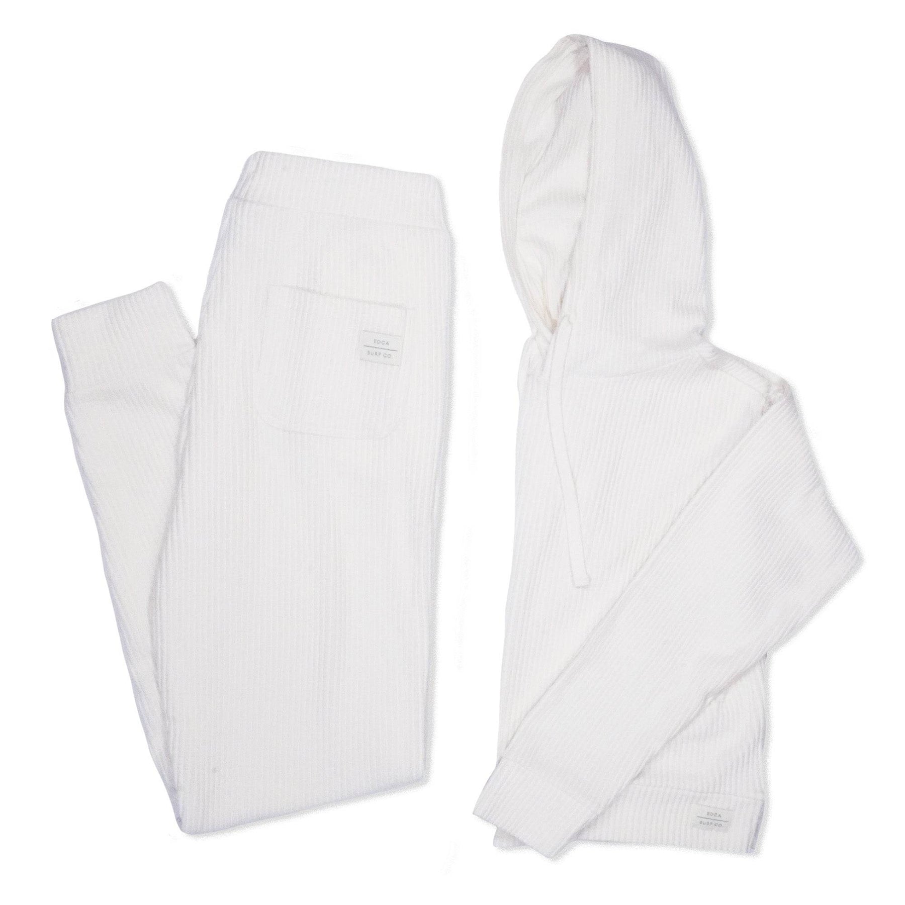 Complete your cozy look with the Malibu Ribbed Jogger, the perfect match to our Malibu Ribbed Hoodie. These joggers are designed with a flattering high-rise waistband and a tapered leg for a sleek silhouette. Made from the same soft, ribbed fabric as the hoodie, these joggers offer the perfect blend of comfort and style. Whether you're relaxing at home or running errands, the Malibu Ribbed Jogger will keep you looking and feeling your best.