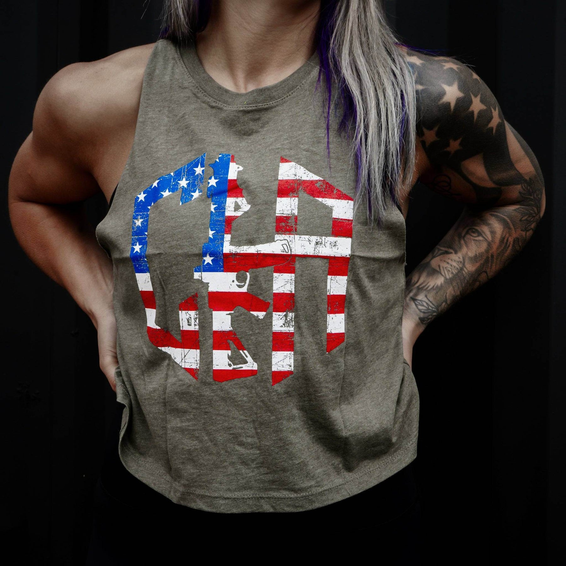Look like a badass in our flowy relaxed fitting athletic cut crop top with Combat Iron's USA Hex Logo screen printed on the front. This CIA Hex USA Edition Flowy Crop Top is perfect for the gym or to rock out in public. Full coverage so no worries about the cut or showing off your goods. Athletics tested for stretch and mobility, making this perfect for any physical activity.