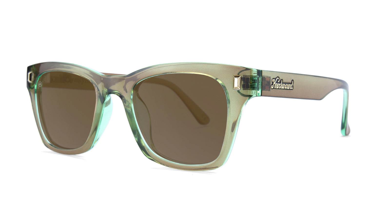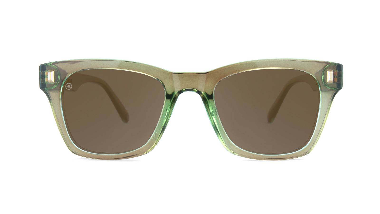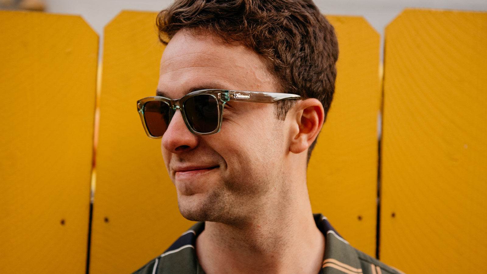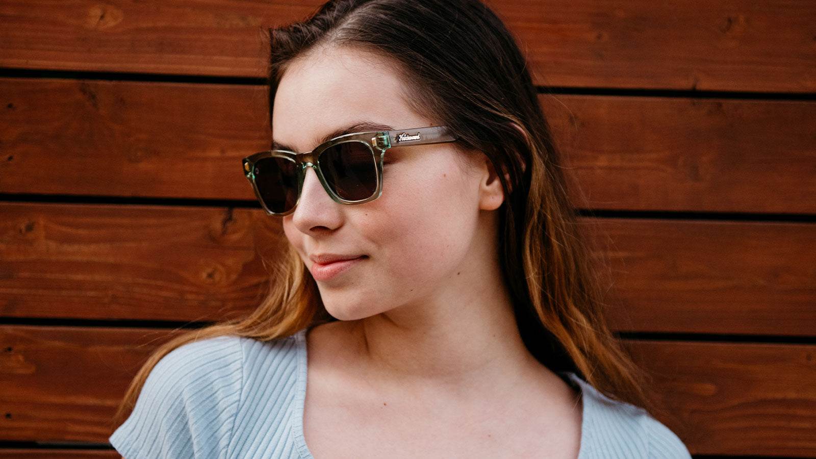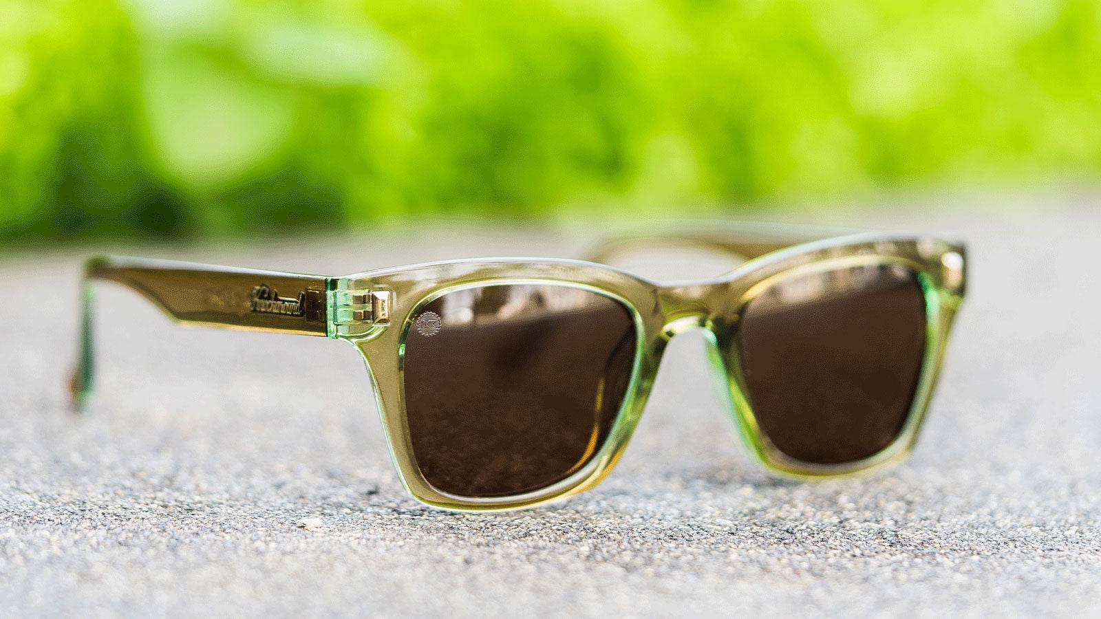 Translucent aged sage frames and polarized amber lenses add subtle color to this fashion-forward pair of Seventy Nines. These polarized clear green sunglasses perfectly balance contemporary cool with vintage appeal in a low-profile silhouette that’s perfect for small to medium-sized faces. Gold recessed hardware tops off this pair, which is fitted with practical touches like FDA approved, impact resistant lenses with full UV400 protection, and durable 5-barrel hinges.