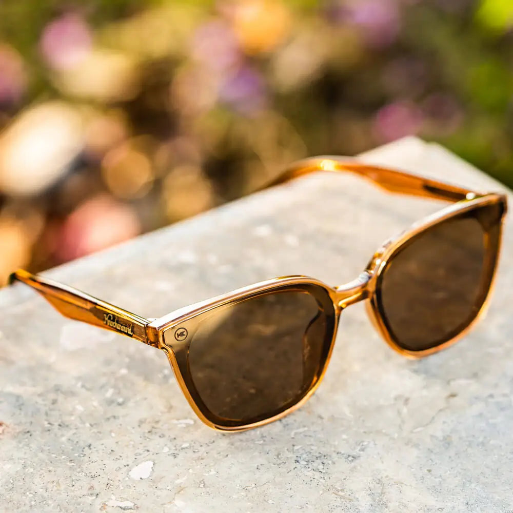 Neutral and grounding like a welcoming forest meadow, our Rio Cloud Catchers sunglasses are built with both form and function in mind. Lose yourself in an air of earthy originality thanks to glossy transparent frames that surround a metal core at the heart of these pragmatic shades. Flashy gold detailing leaves no questions necessary, while polarized amber lenses with UV400 protection and certified impact resistance let all your wild worries roll off with ease. It’s no wonder everyone wants to know your secret.